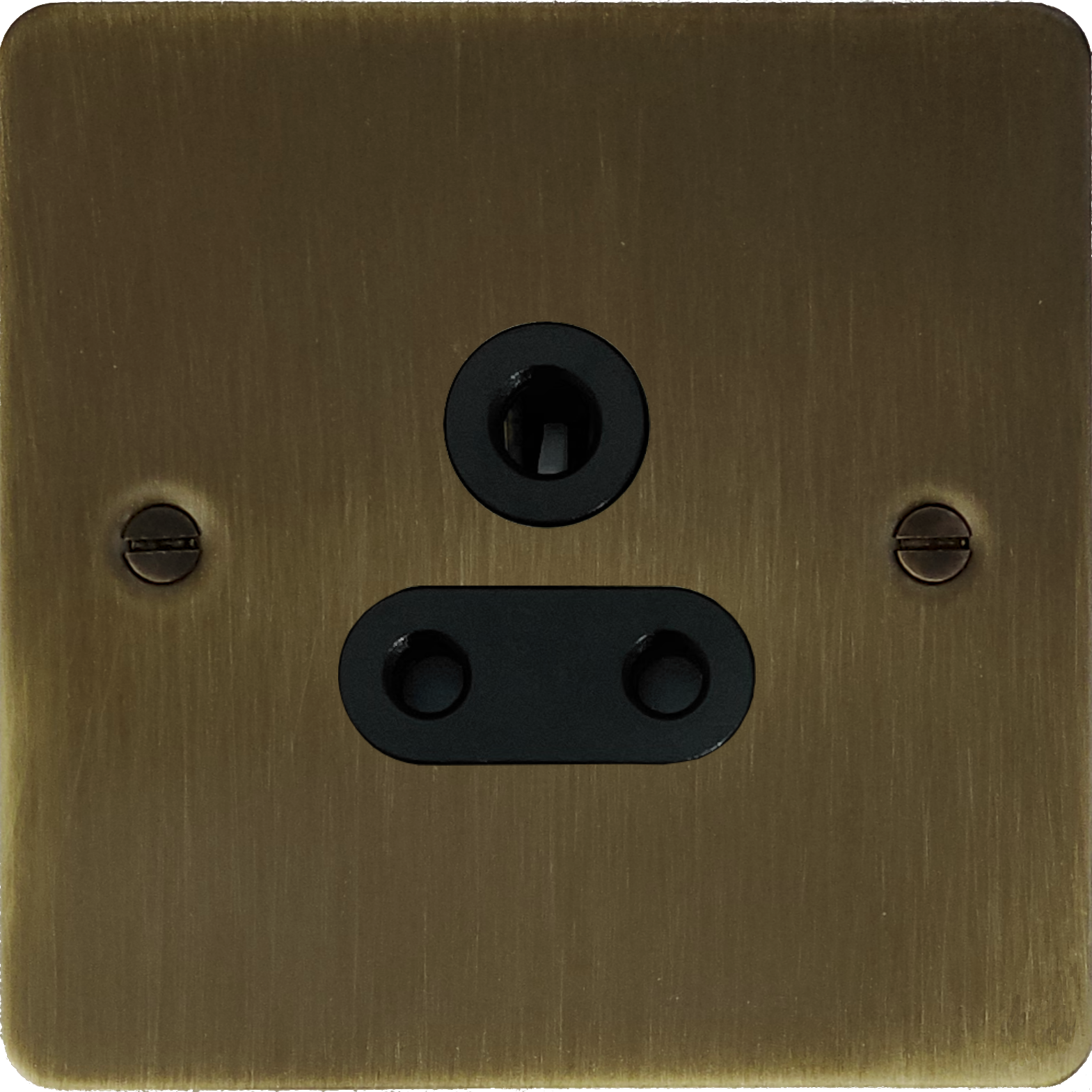 Flat Antique Brass 5 Amp 3 Pin Socket FL.59B.AB