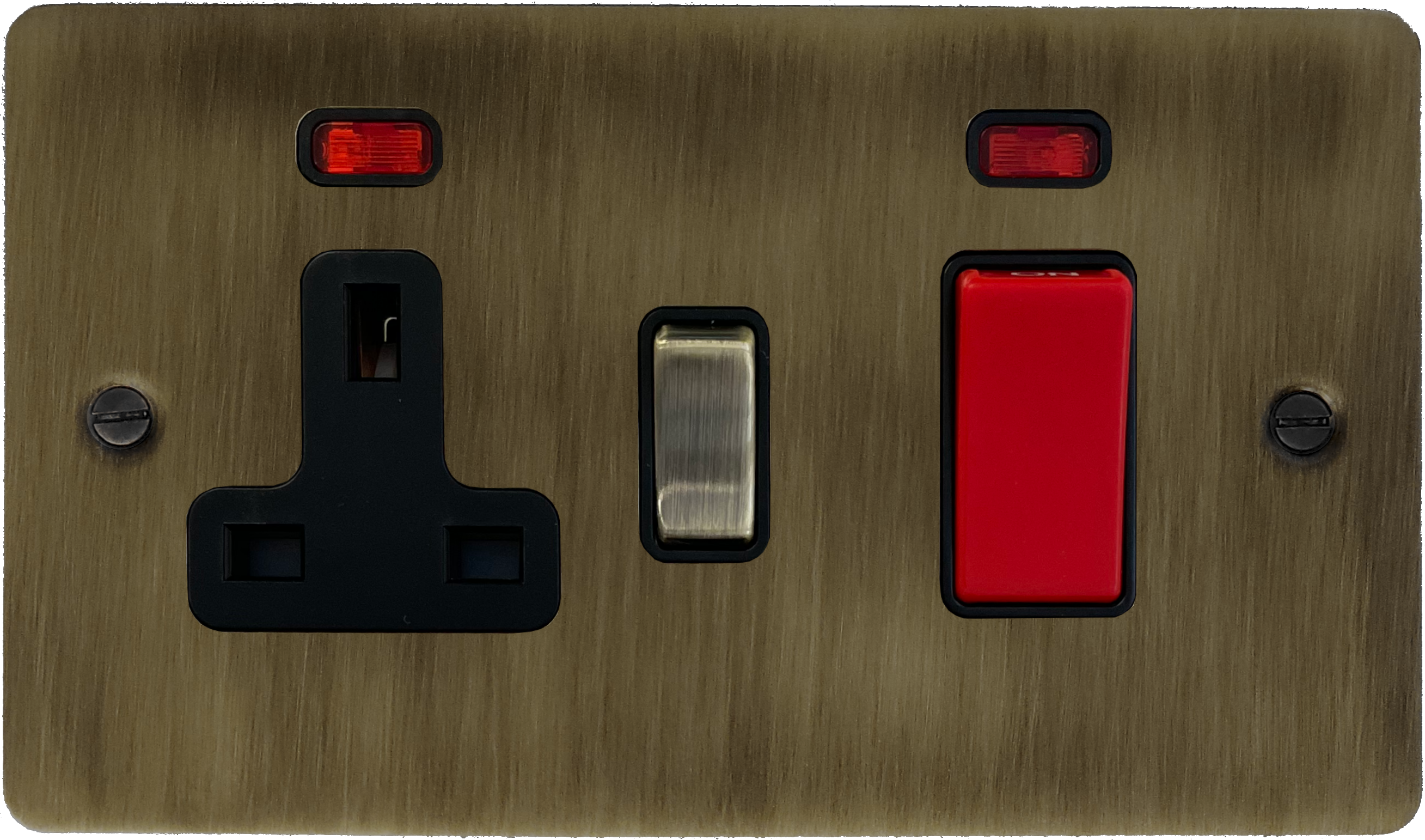 Flat Antique Brass Cooker Switch with Socket FL.329.AB