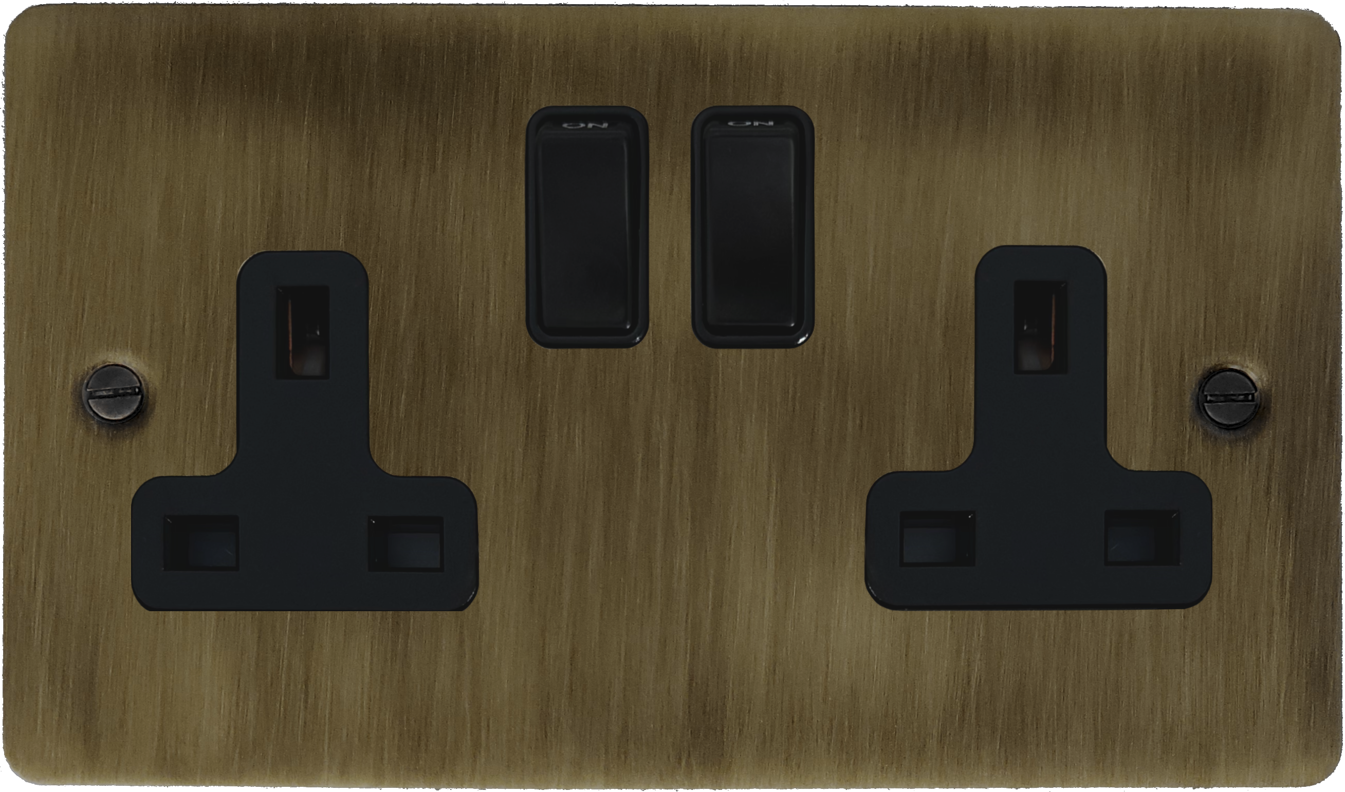 Flat Antique Brass Socket (2 Gang/Black Switches) FL.10B.AB
