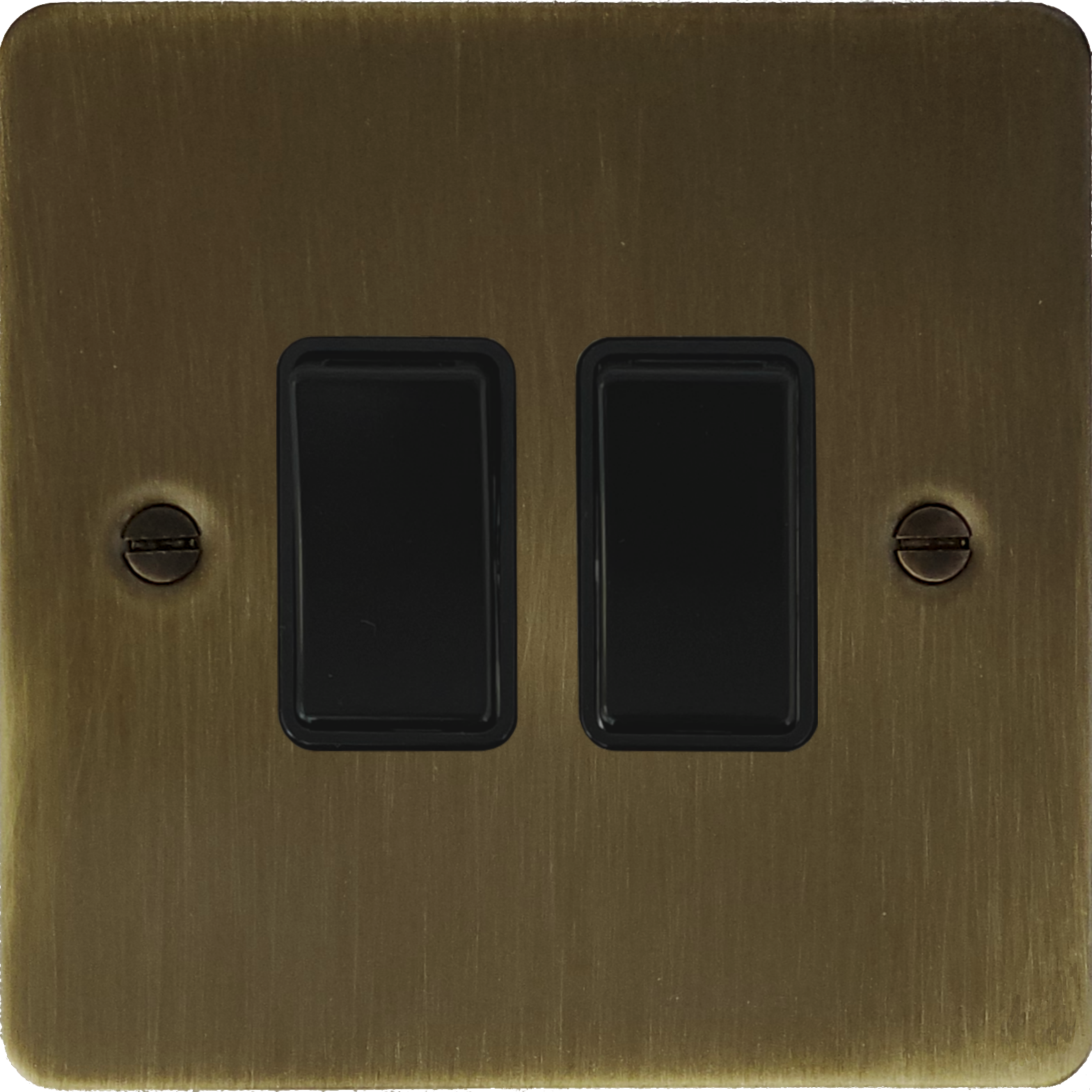 Flat Antique Brass Switch (2 Gang/Black Switches) FL.2B.AB