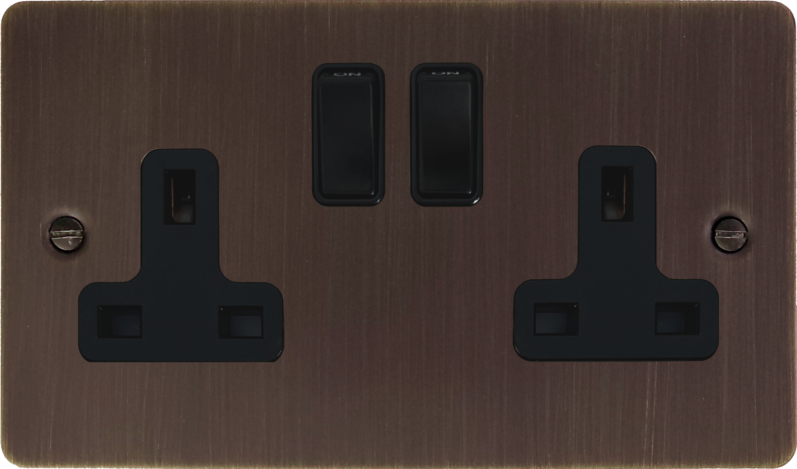 Flat Antique Copper Double Socket (Black Switch) FL.10B.AC