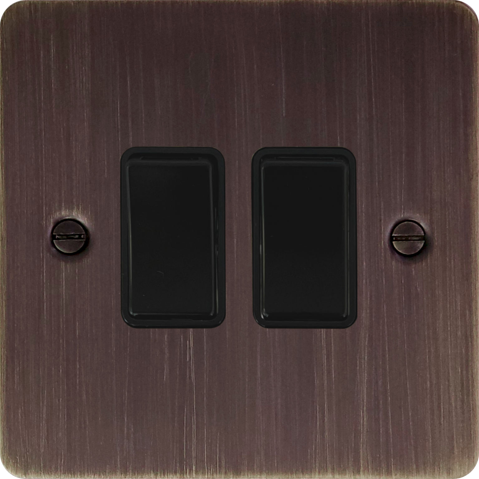 Flat Antique Copper Light Switch (2 Gang/Black Switch) FL.2B.AC