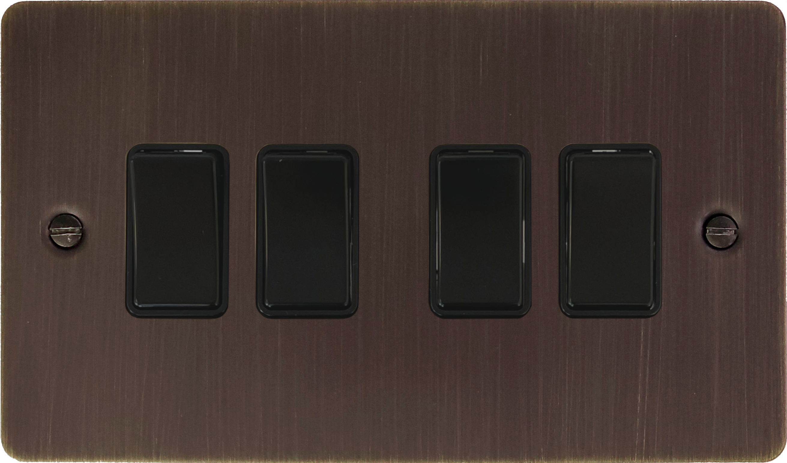 Flat Antique Copper Light Switch (4 Gang/Black Switch) - FAC4B
