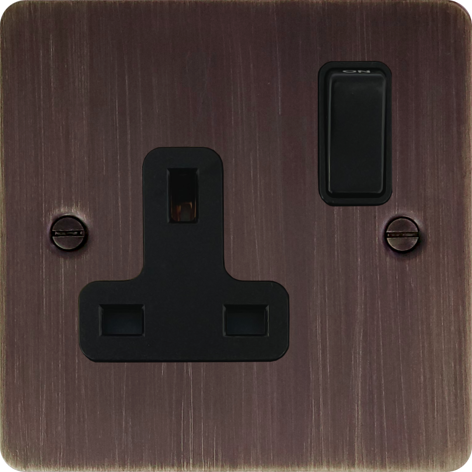Flat Antique Copper Single Socket (Black Switch) FL.9B.AC