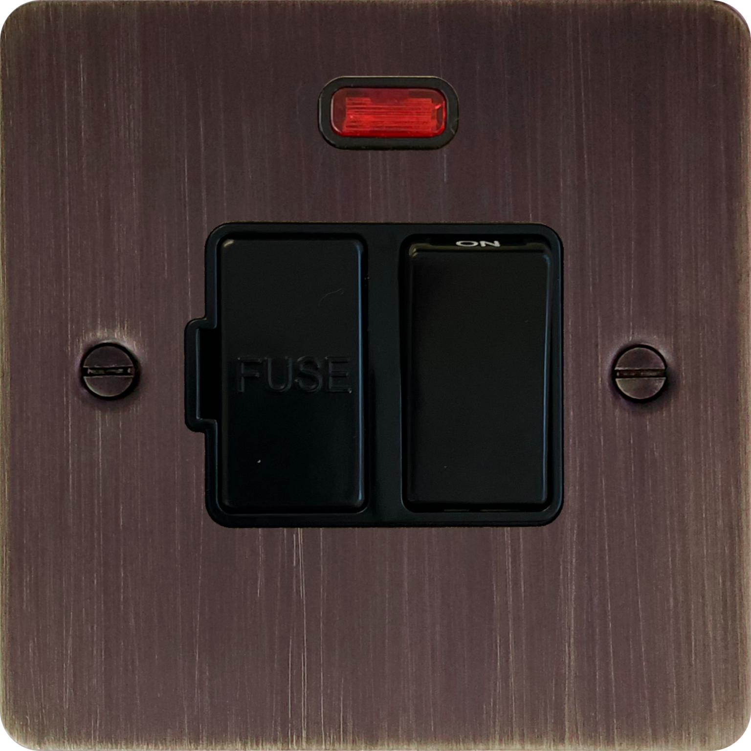 Flat Antique Copper Switched Fused Spur with Neon (Black Switch) FL.27B.AC
