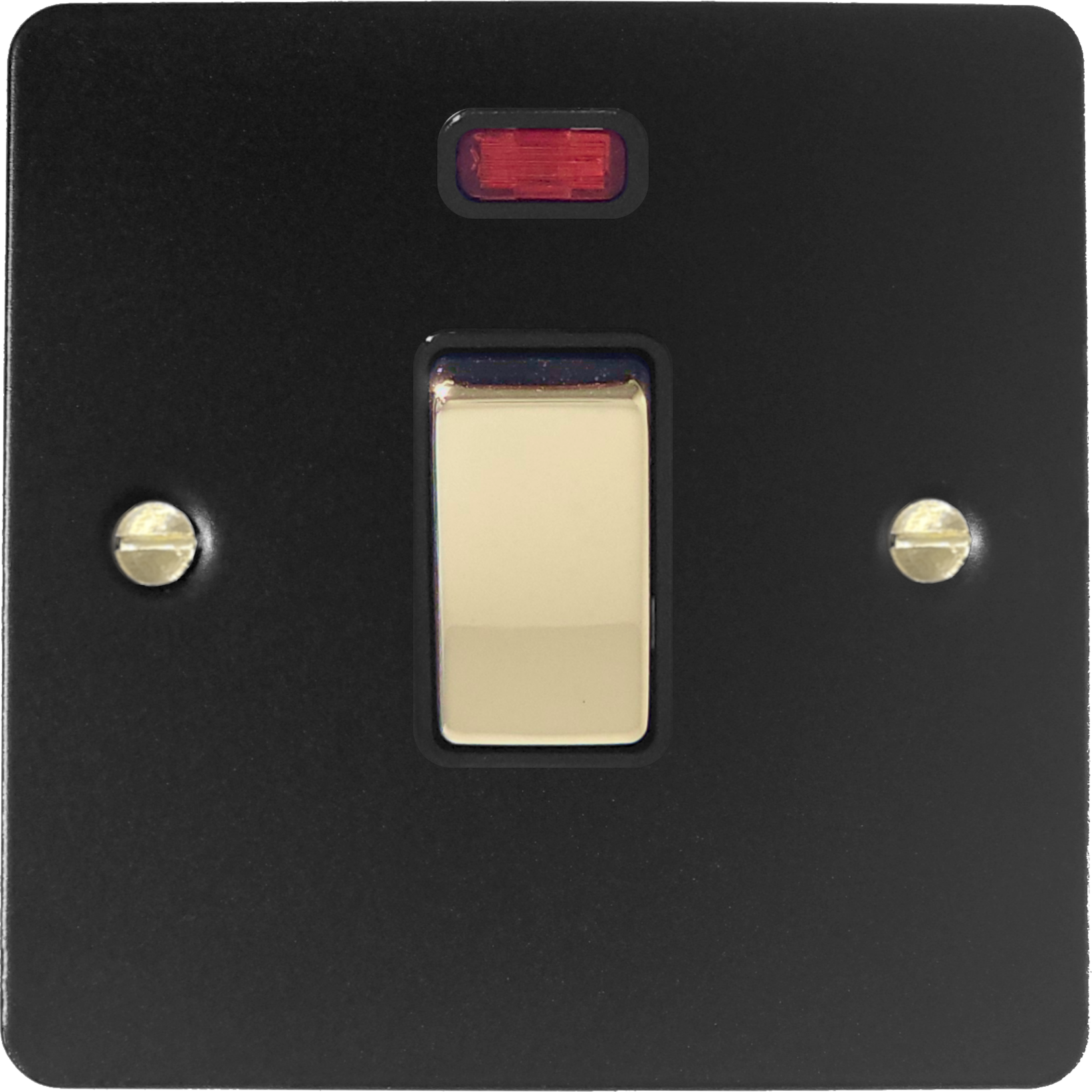 Flat Black 20 Amp DP Switch with Neon-Polished Brass Switch FL.326PB.FB