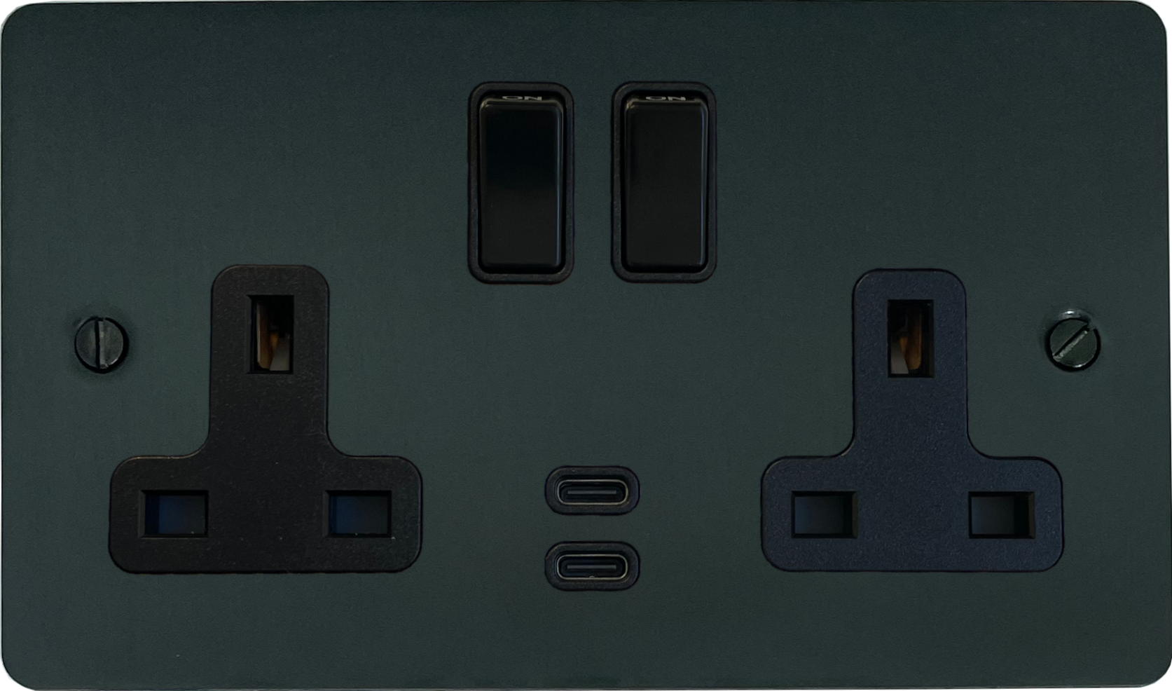 Flat Black Bronze Double Socket (2 Gang/USB-C/Black Switches) FL.913B.BB