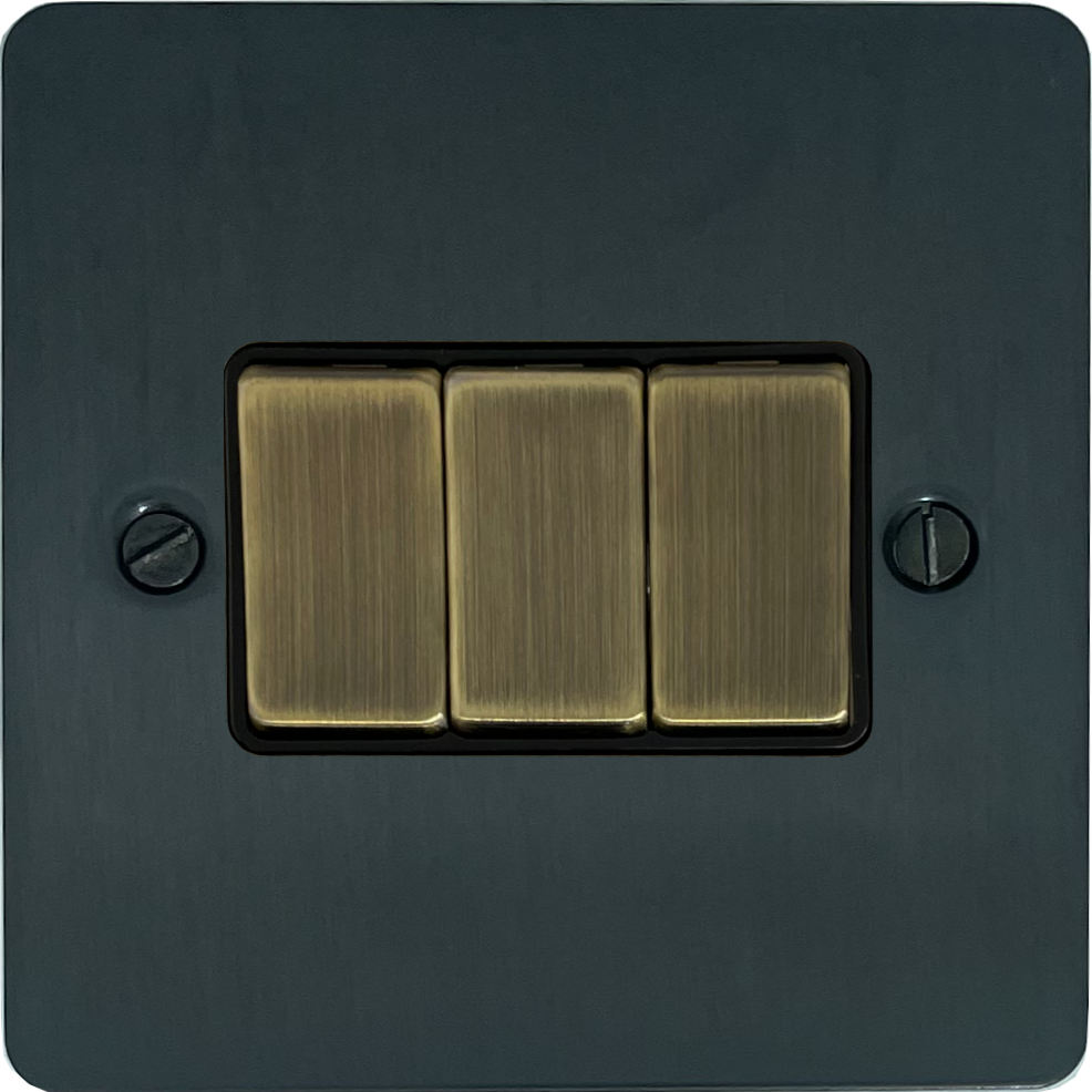 Flat Black Bronze Light Switch (3 Gang/Antique Brass Switches) FL.303AB.BB