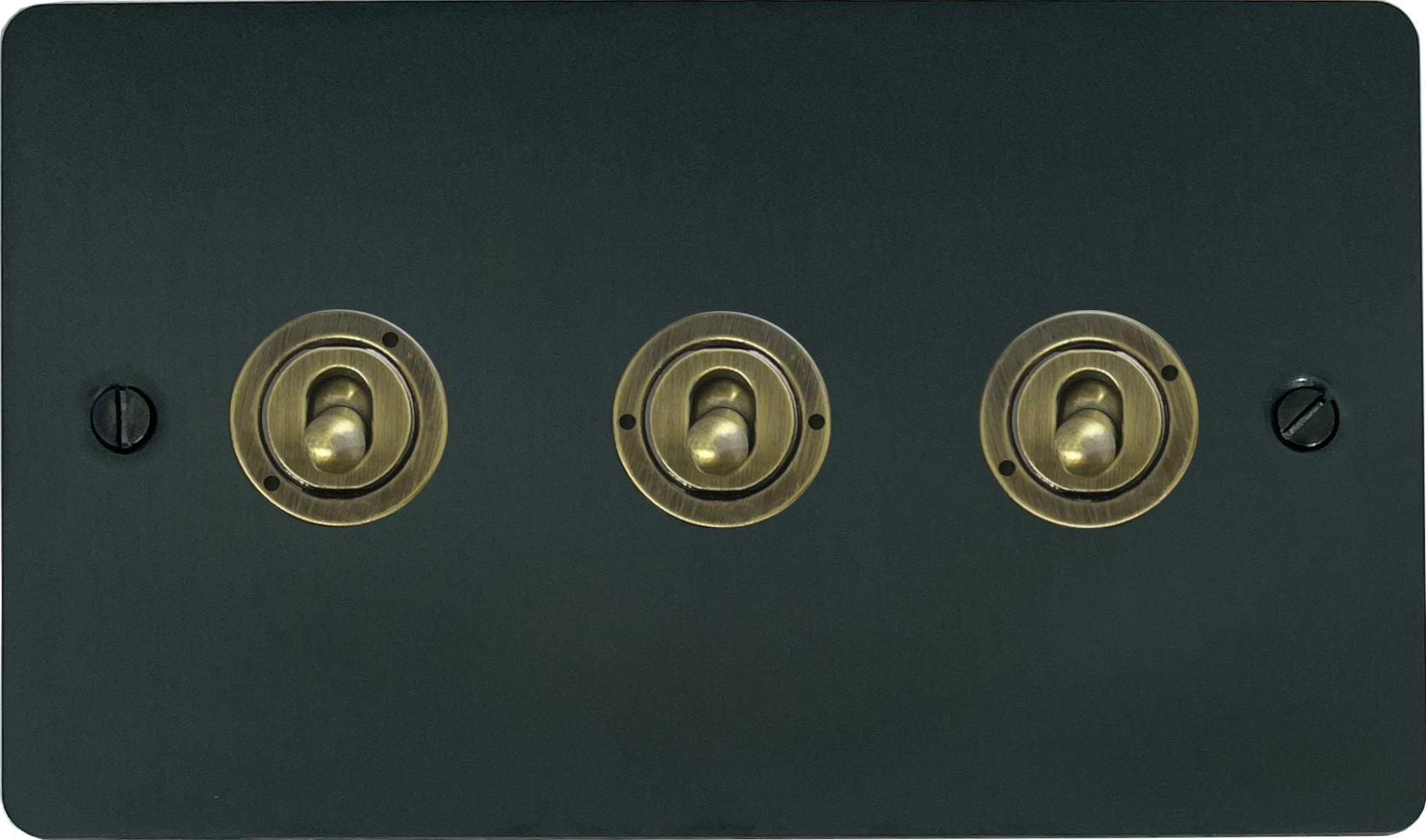 Flat Black Bronze Toggle Switch (3 Gang/Antique Brass Toggle) - FBB383-AB