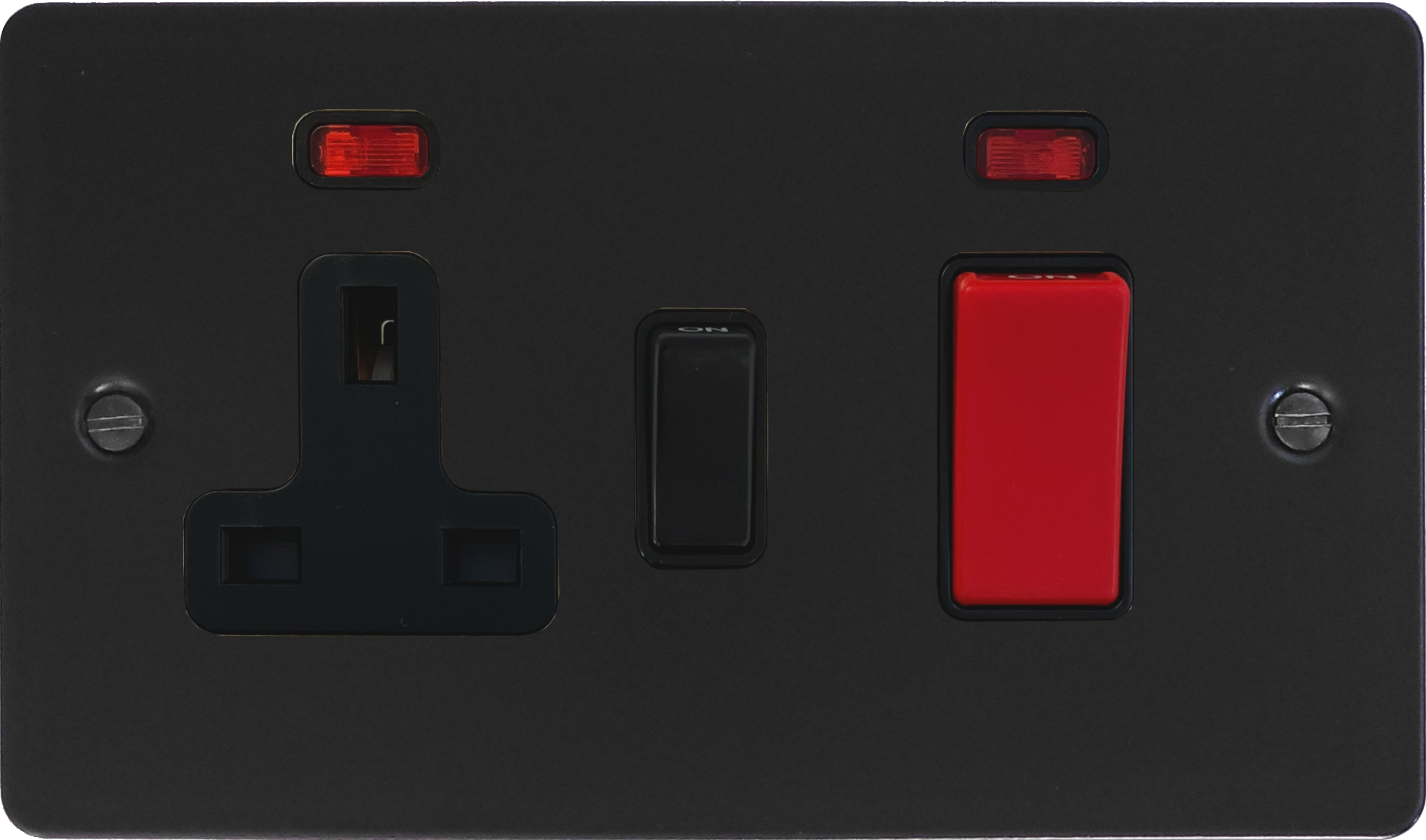 Flat Black Cooker Switch with Socket (45 Amp/Double Plate) FL.29B.FB