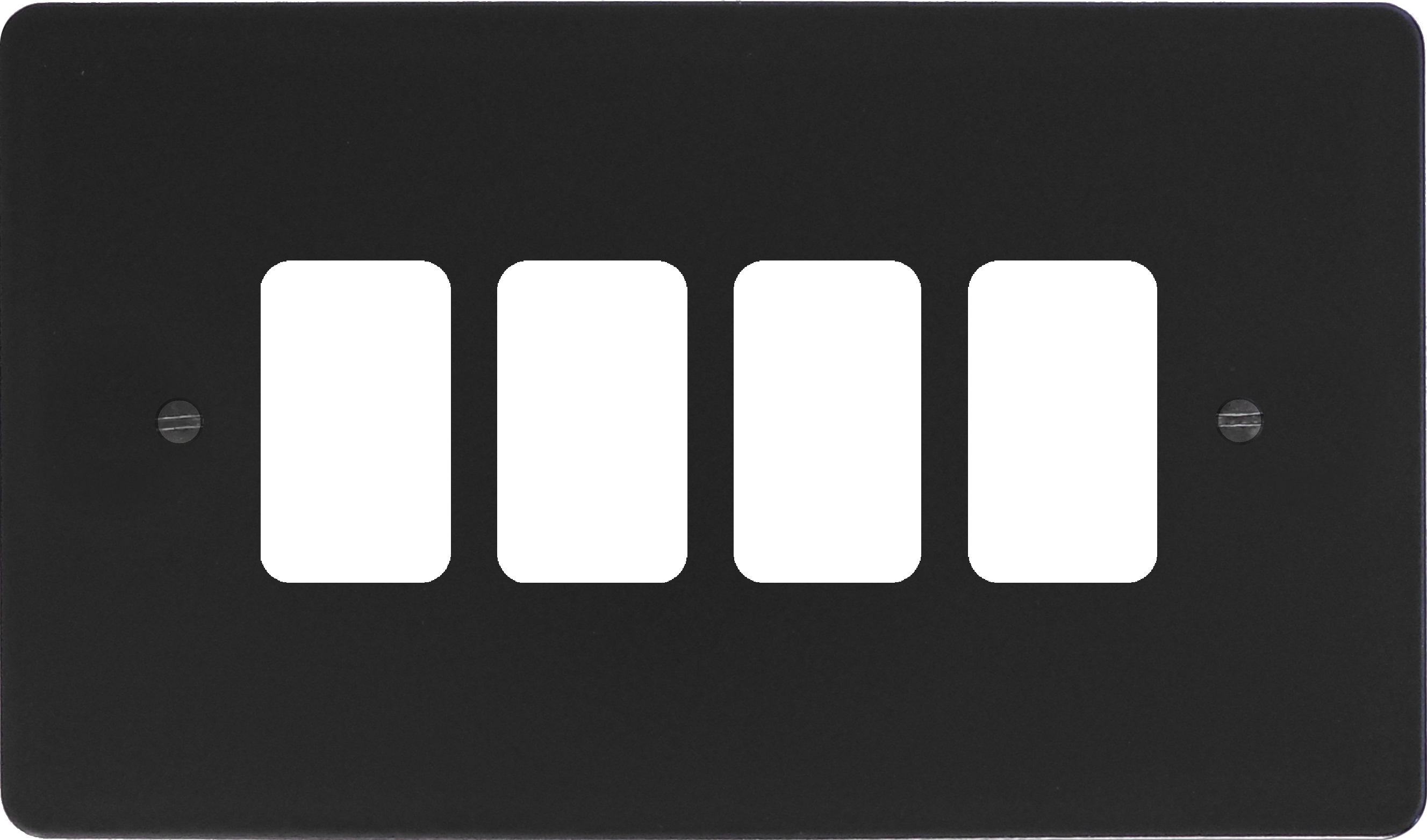 Here we have the 4 gang grid plate in the flat matt black range from G+H Electrical Accessories.