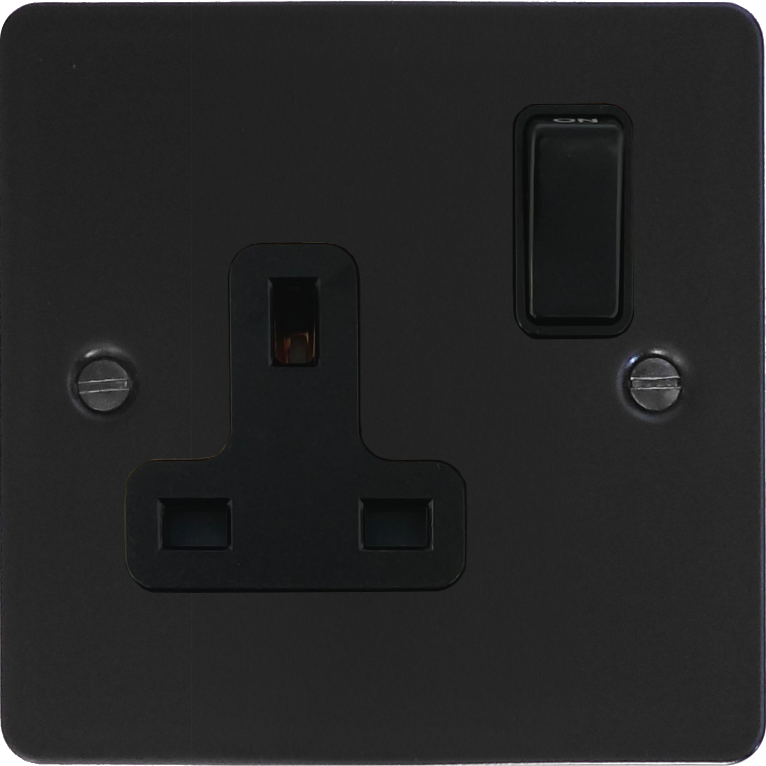 Flat Black Single Socket (Black Switch) FL.9B.FB