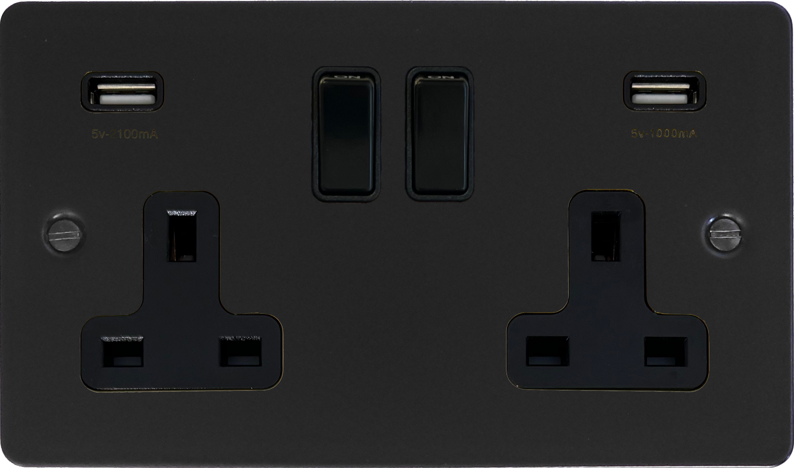 Flat Black Socket Double Socket (USB Sockets) - FFB910B