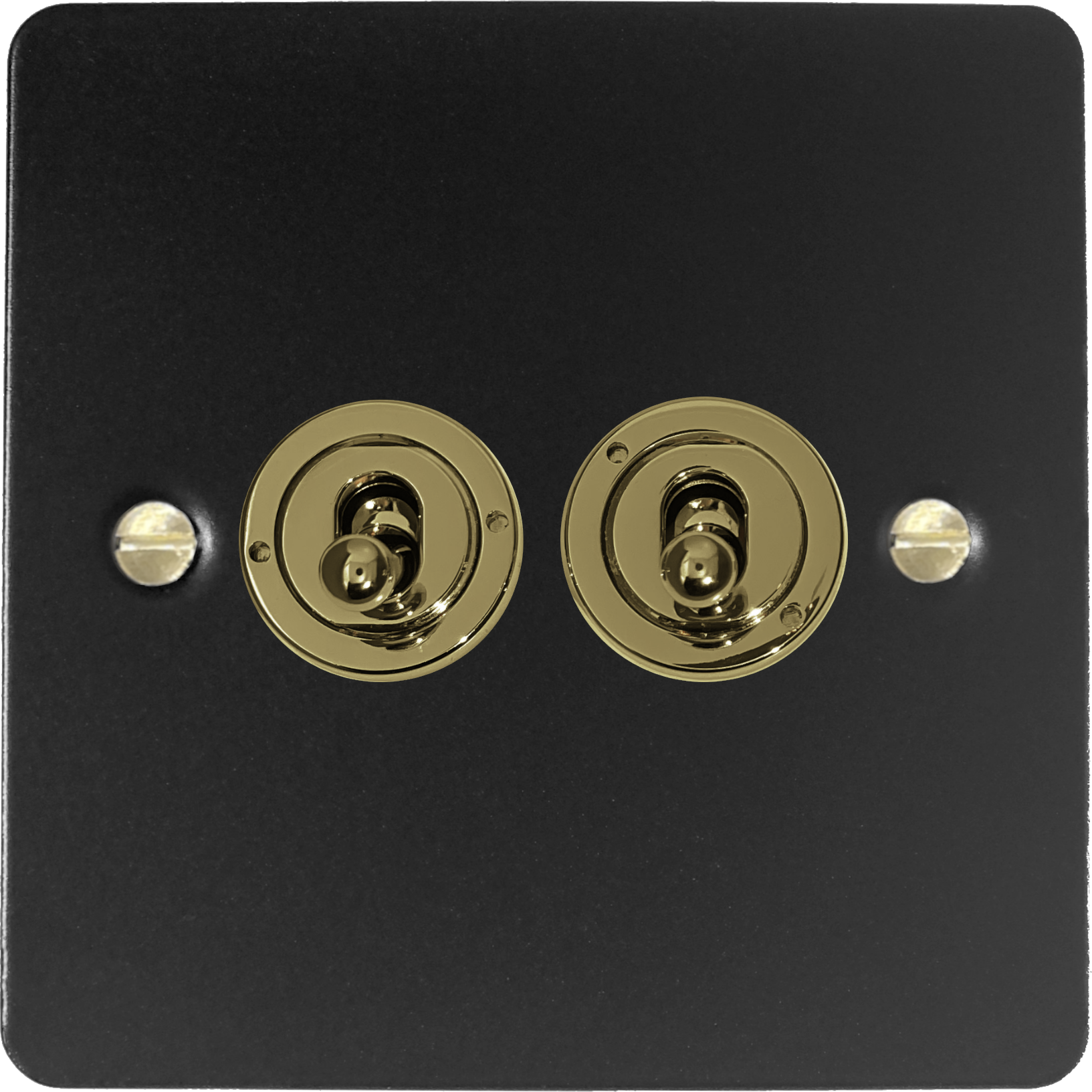 Flat Black Toggle Switch (2 Gang/Polished Brass Toggle) FL.382PB.FB
