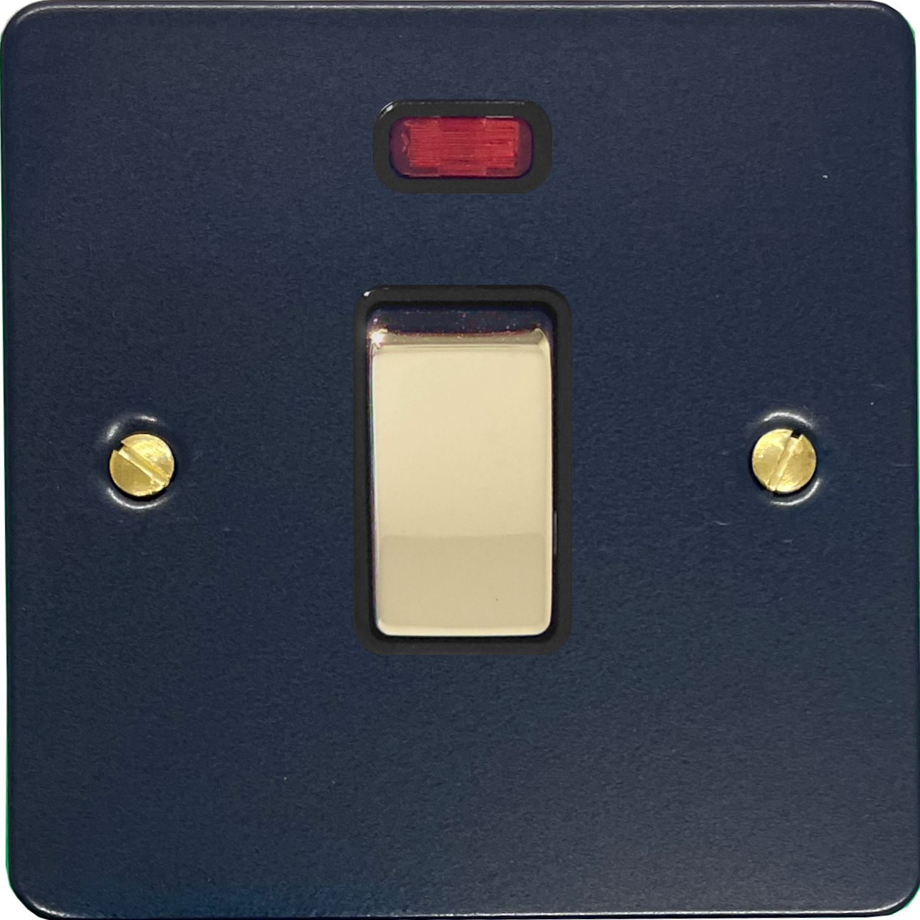 Flat Blue 20A DP Switch with Neon (Black Insert/Polished Brass Switch) FL.326PB.RB