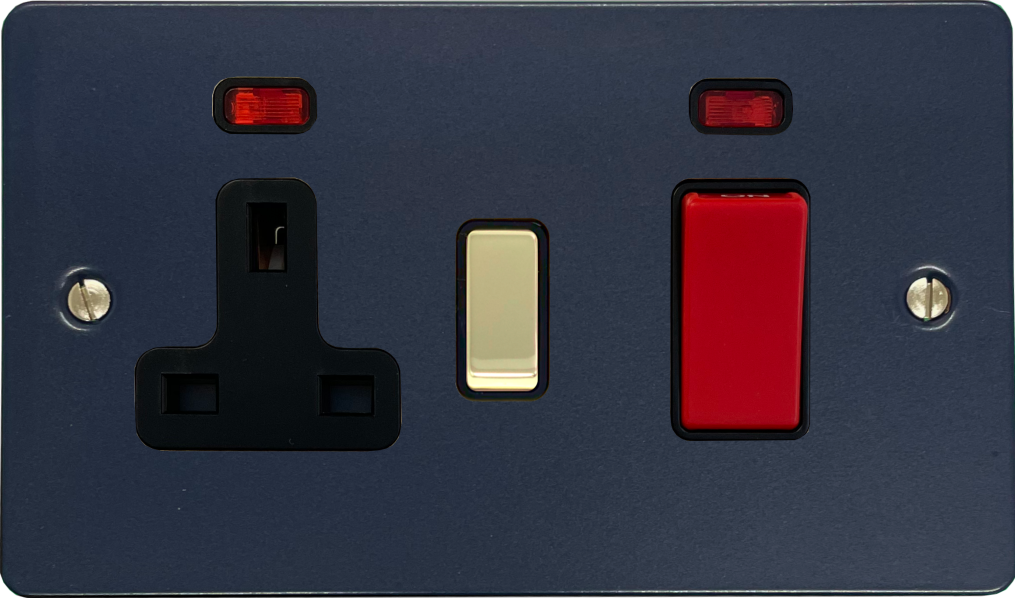 Flat Blue Cooker Switch with Socket (Black Insert/Polished Brass Switch) FL.329PB.RB