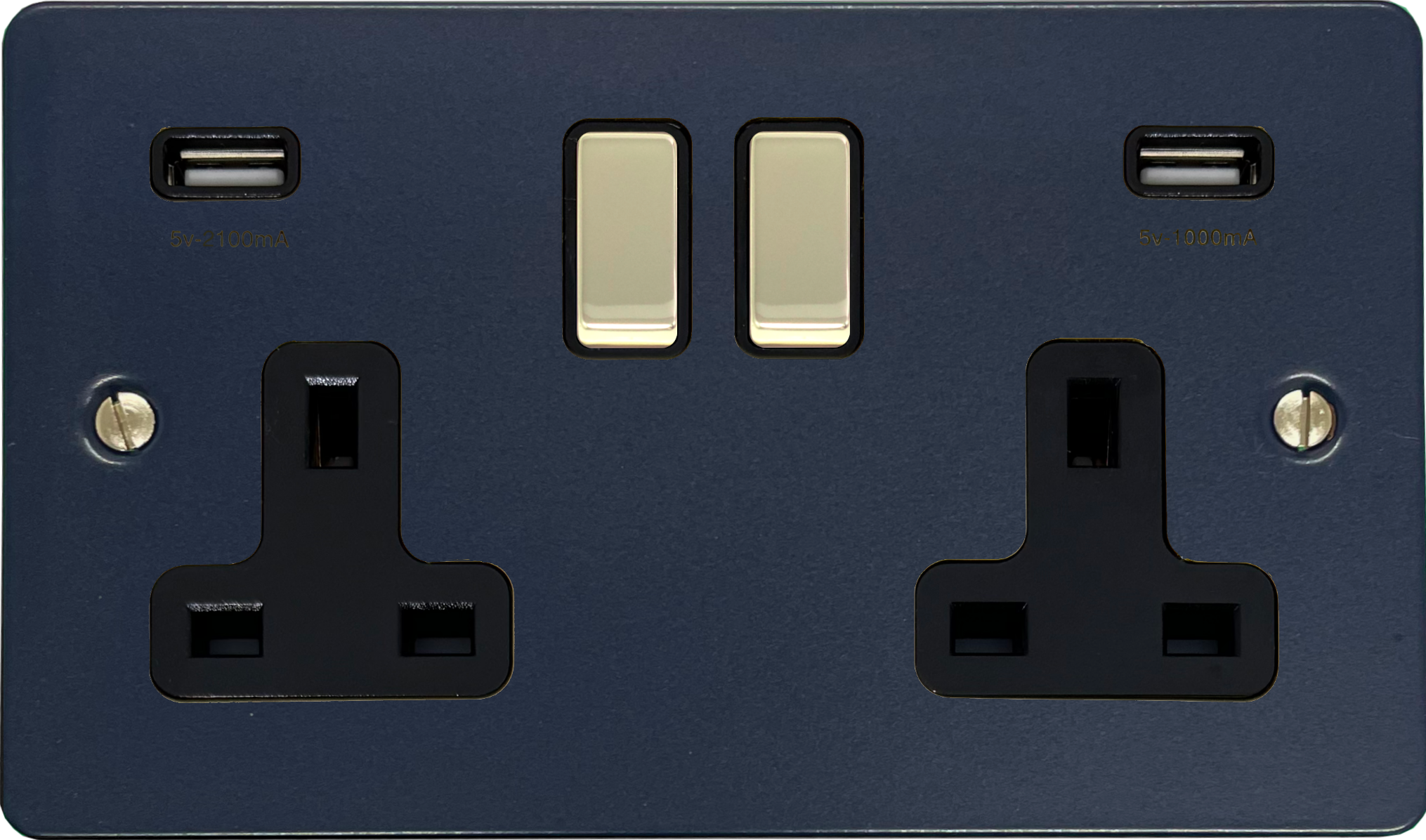 Flat Blue Double Socket with USB (Black Insert/Polished Brass Switches) - FRB3910-PB