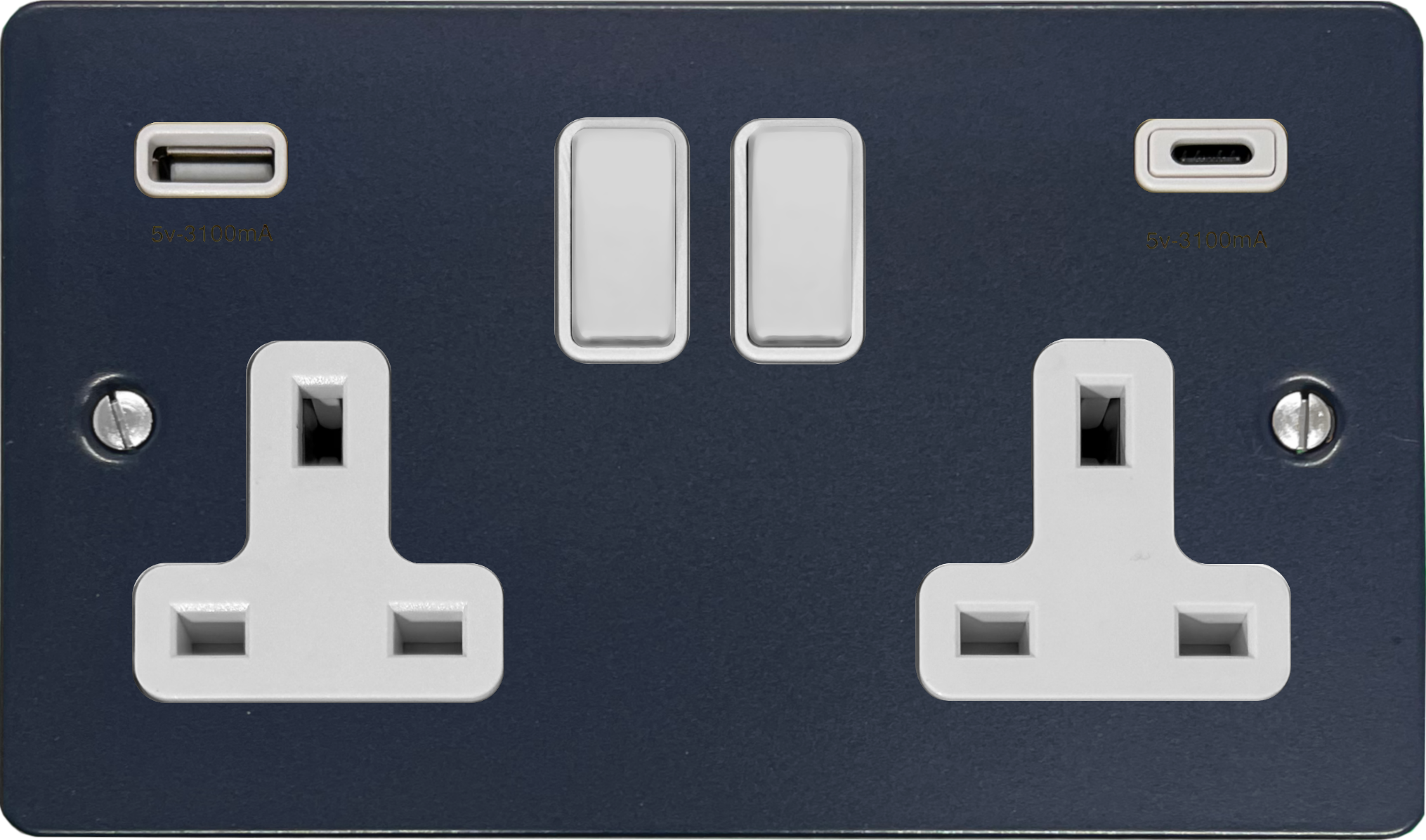Flat Blue Double Socket with USB (USB-A and USB-C/White Switches) FL.911W.RB