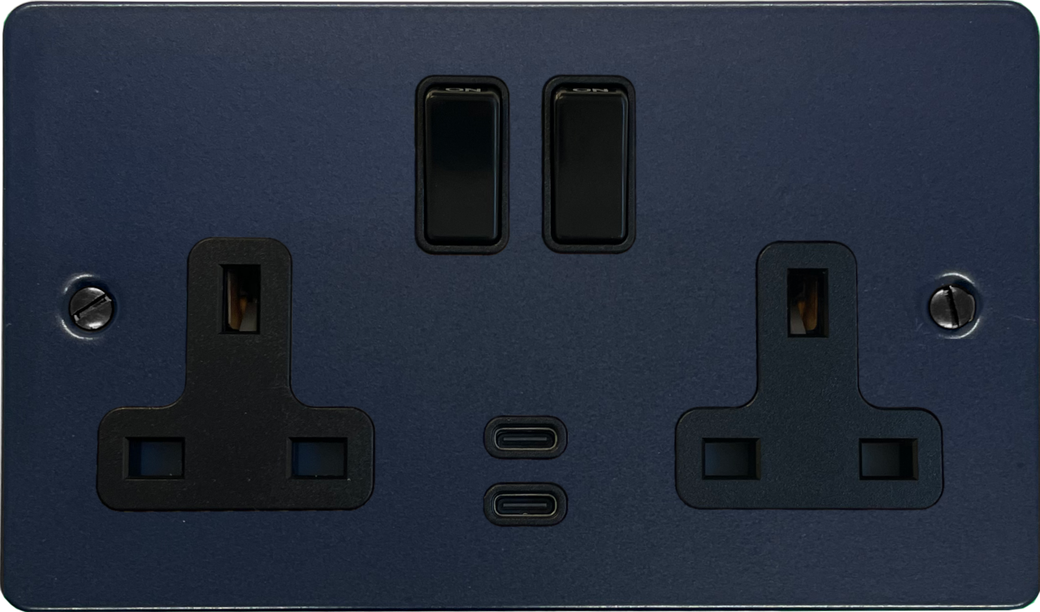 Flat Blue Double Socket with USB (USB-C/Black Switches) FL.913B.RB
