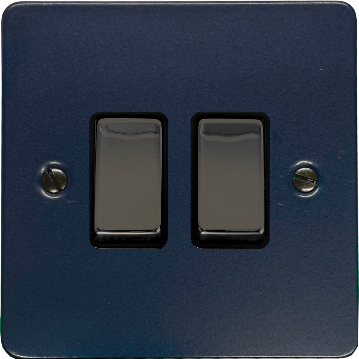 Flat Blue Light Switch (2 Gang/Black Insert/Black Nickel Switches) - FRB302-BN