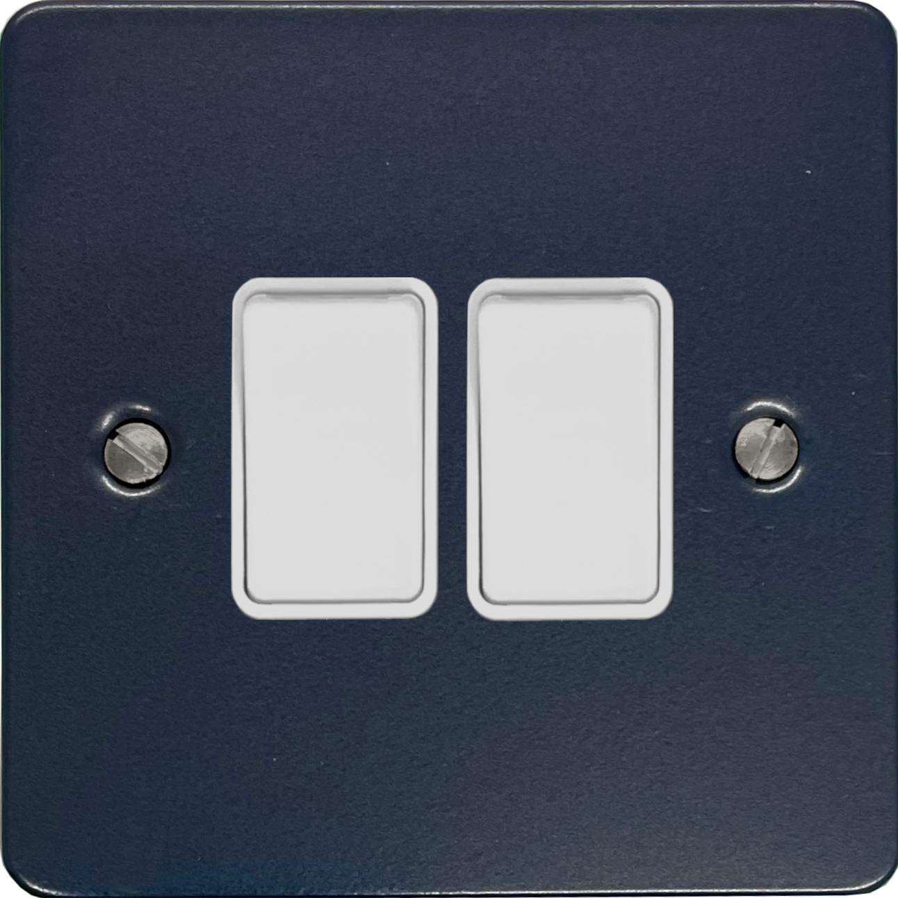 Flat Blue Light Switch (2 Gang/White Switches) FL.2W.RB