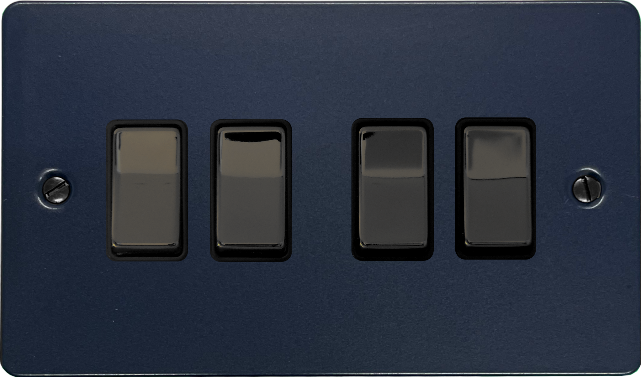 Flat Blue Light Switch (4 Gang/Black Insert/Black Nickel Switches) - FRB304-BN