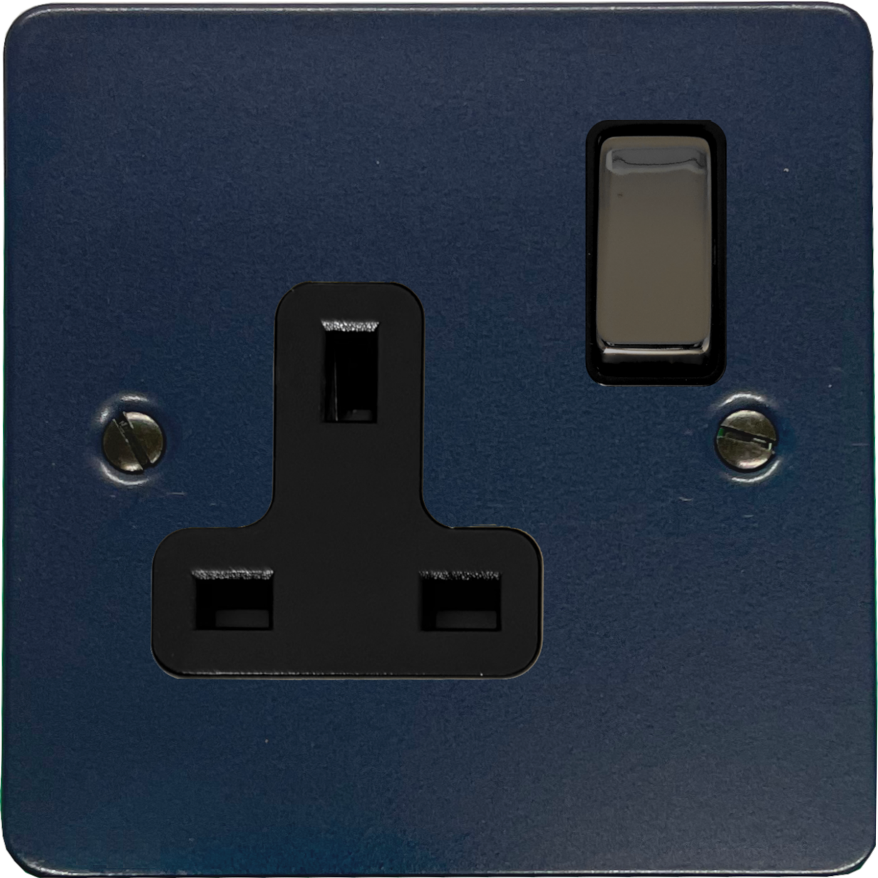 Flat Blue Single Socket (Black Insert/Black Nickel Switch) - FRB309-BN