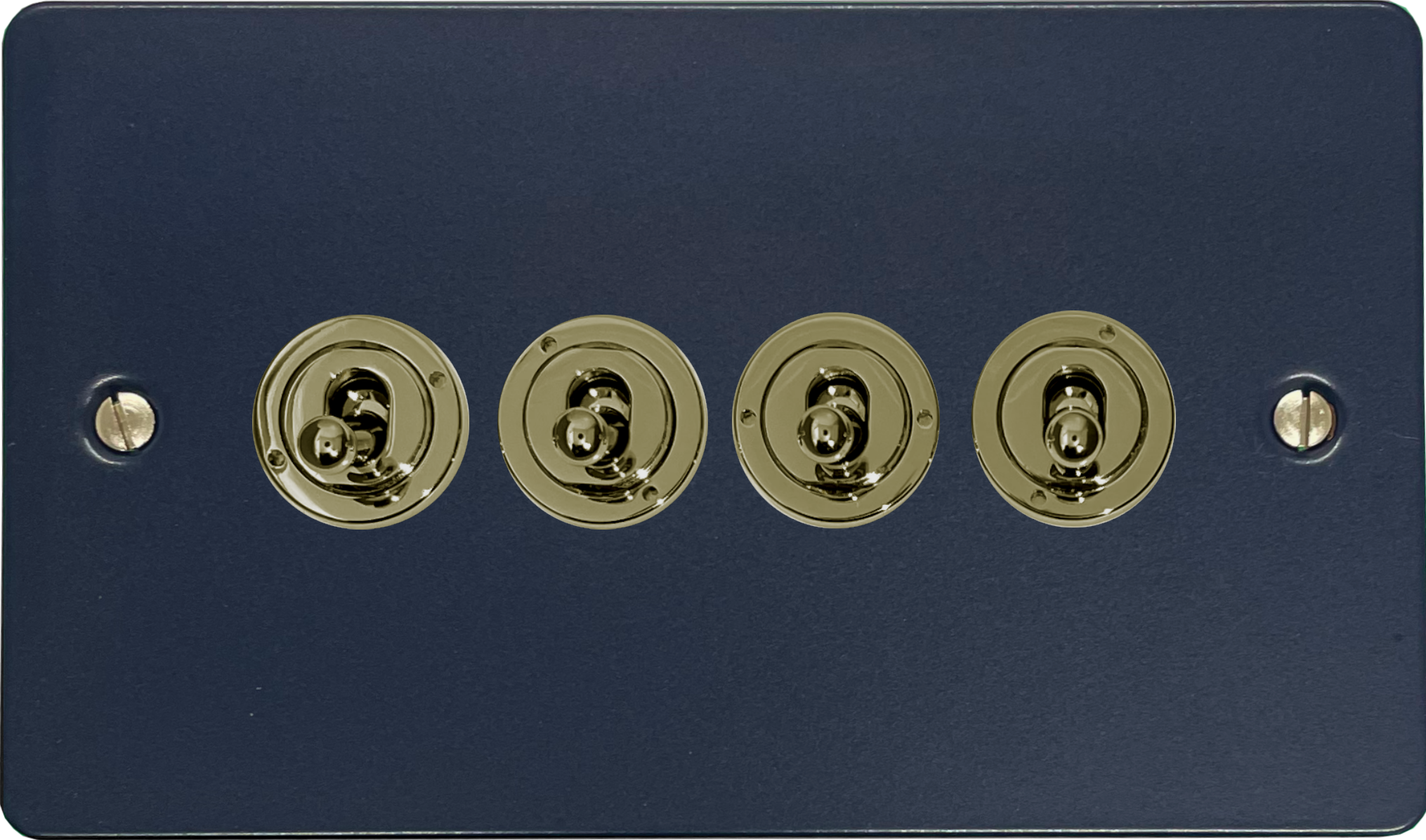 Flat Blue Toggle Switch (4 Gang/Polished Brass Switcesh) - FRB384-PB
