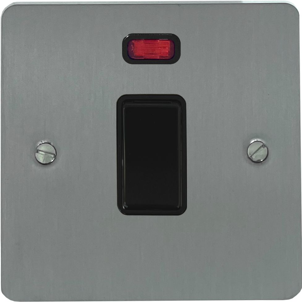 Flat Brushed Steel 20A DP Switch with Neon (Black Switch) FL.26B.SS