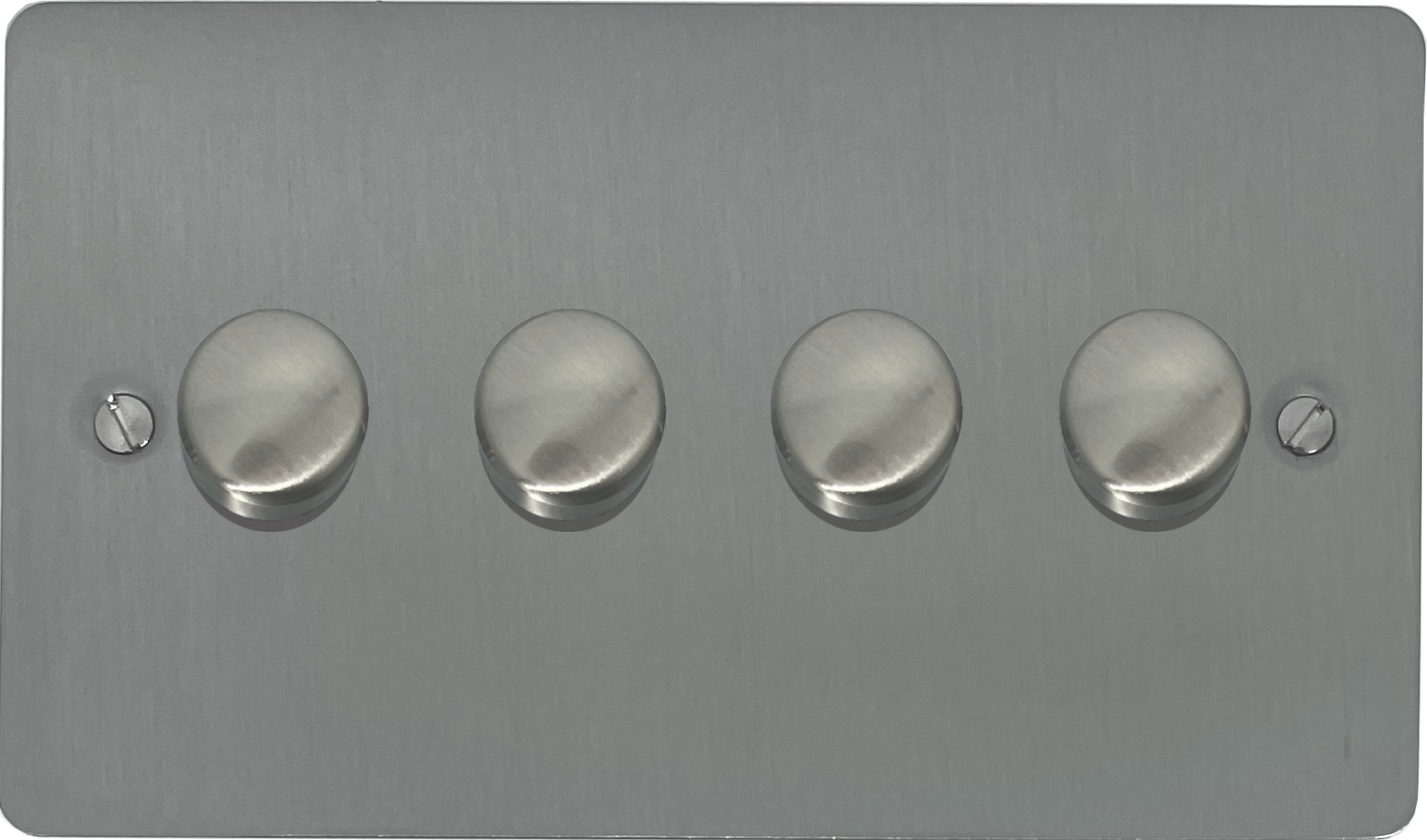 Flat Brushed Steel LED Dimmer (4 Gang) - FSS524