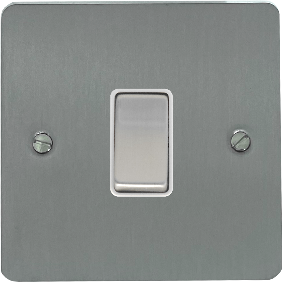 Flat Brushed Steel Light Switch (1 Gang/White Insert/Satin Chrome Switch) FL.201.SS