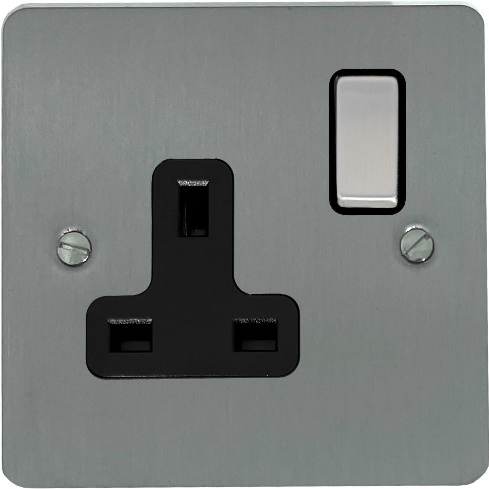 Flat Brushed Steel Single Socket (Black Insert/Satin Chrome Switch) FL.309.SS