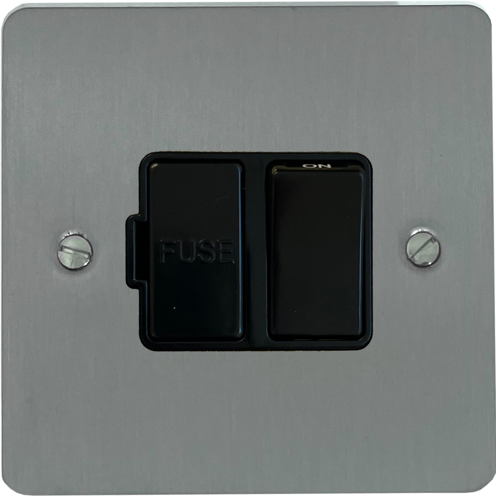 Flat Brushed Steel Switched Fused Spur (Black Switch) FL.57B.SS