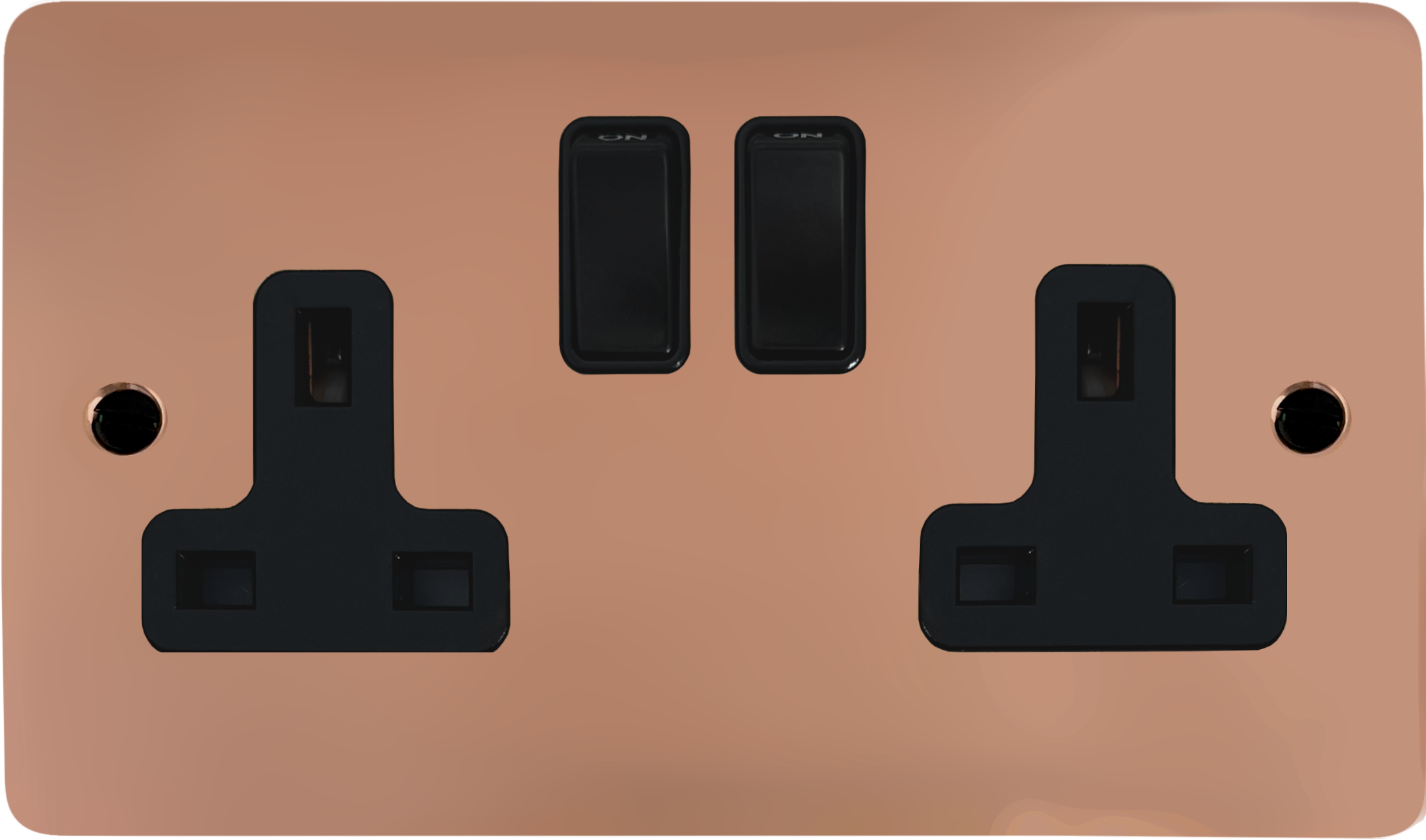 Flat Copper Hand Waxed Double Socket (Black Switch) FL.10B.BCHX