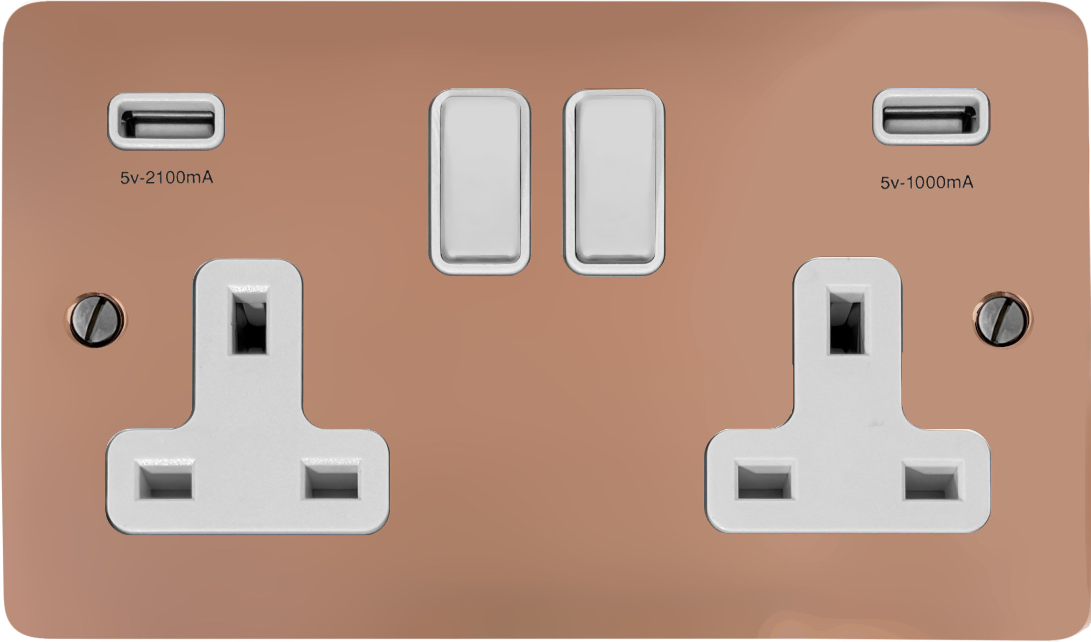 Flat Copper Hand Waxed Double Socket with USB (White Switch) FL.910W.BCHX