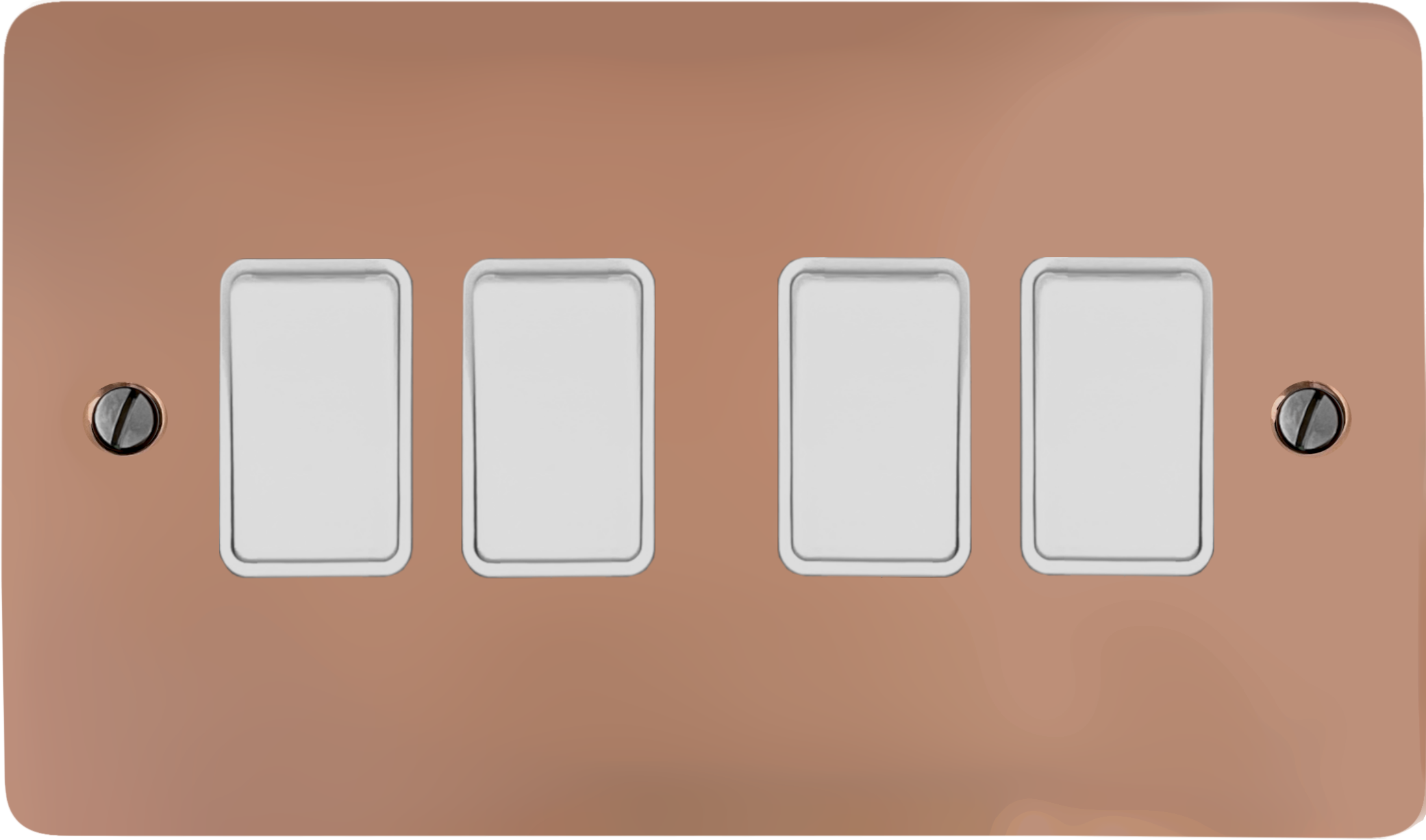 Flat Copper Hand Waxed Light Switch (4 Gang/White Switch) FL.4W.BCHX