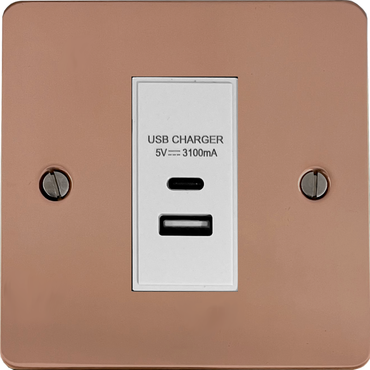 Flat Copper Hand Waxed USB Charger (USB-A and USB-C) (1 Gang/White Insert) FL.41W.BCHX