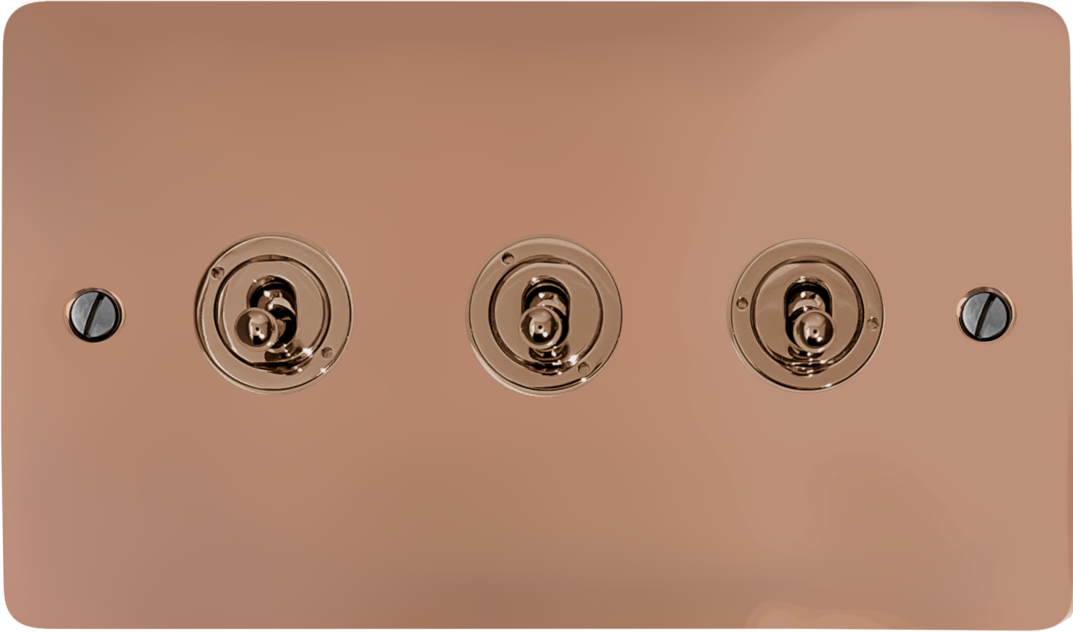 Flat Copper Toggle Switch (3 Gang/Bright Copper Toggle) FL.383BC.BC