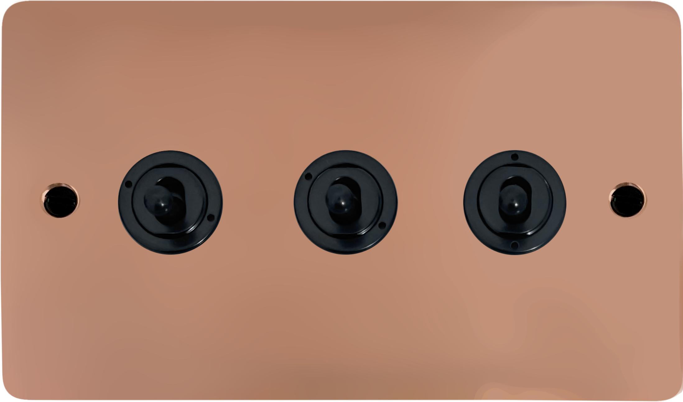 Flat Copper Toggle Switch (3 Gang/Flat Black Toggle) FL.383FBK.BC