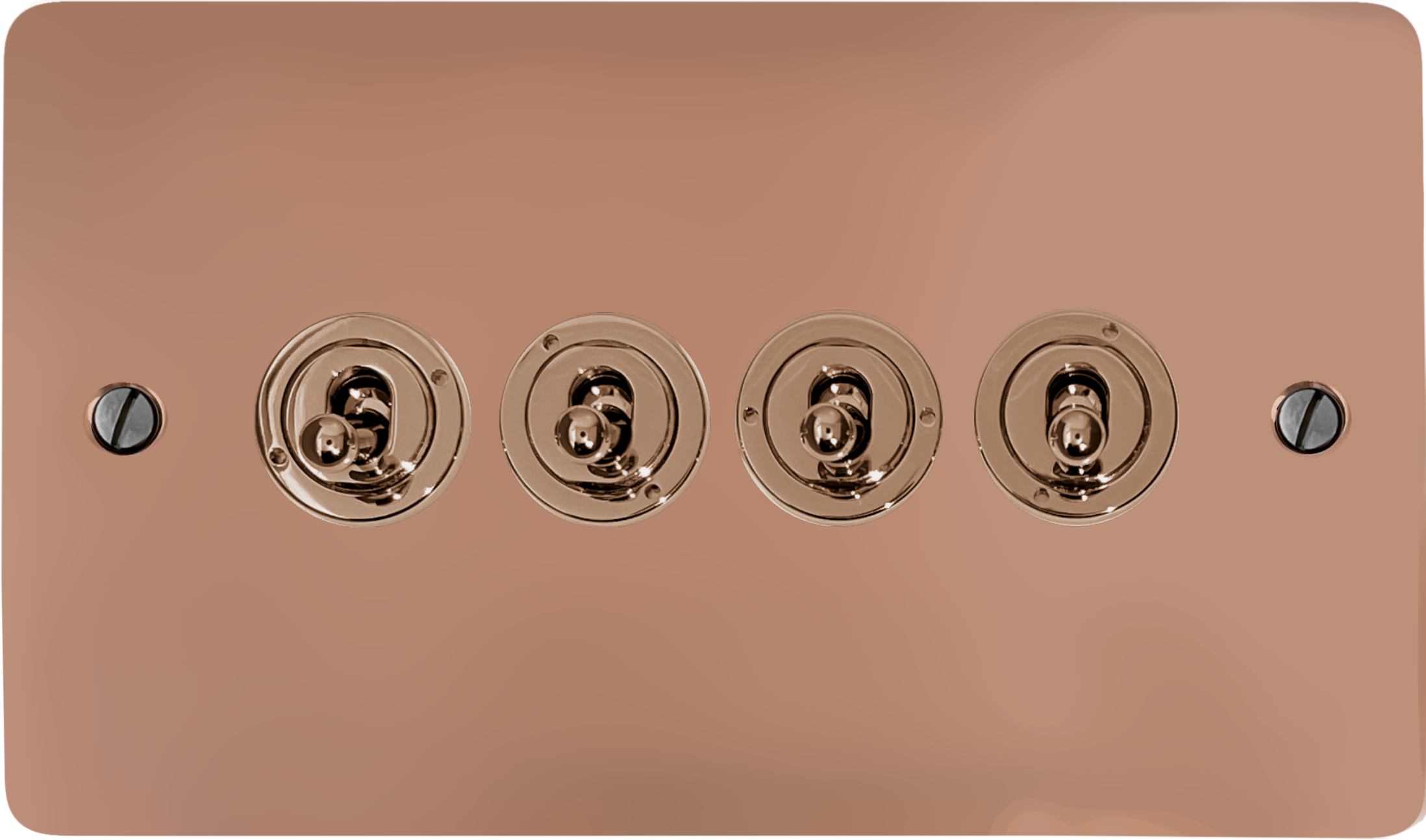 Flat Copper Toggle Switch (4 Gang/Bright Copper Toggle) FL.384BC.BC