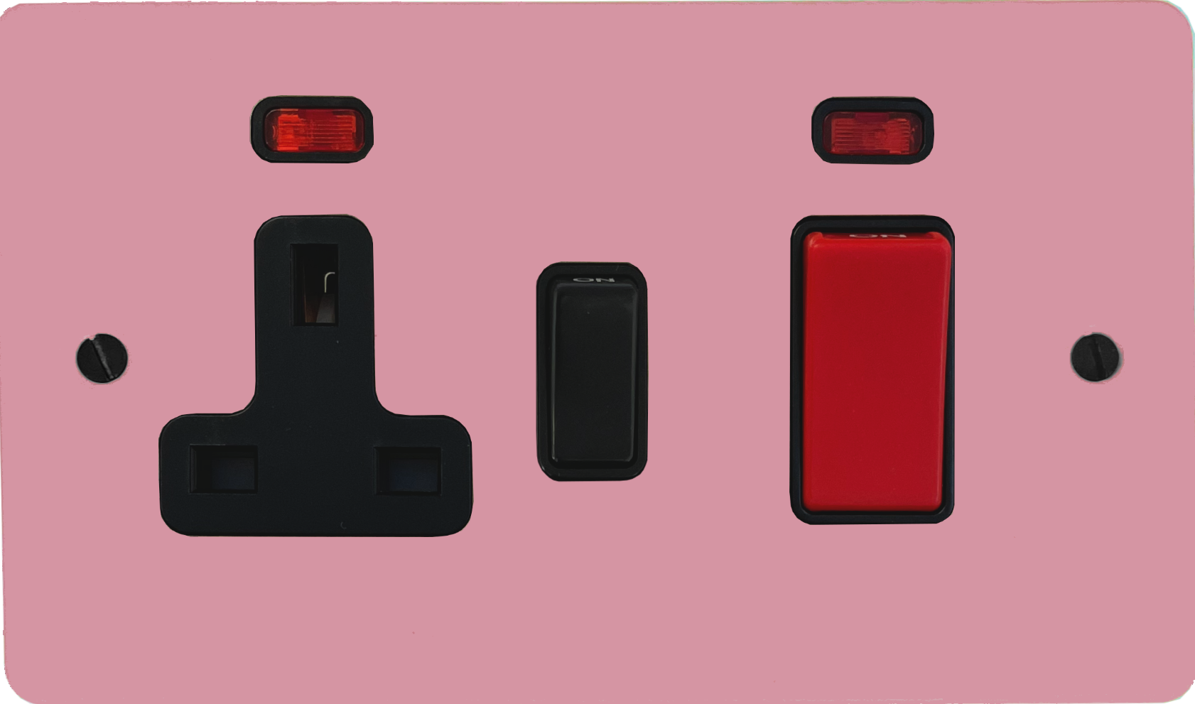 Flat Gloss Pink Cooker Switch with Socket (Black Switch) - FGP29B