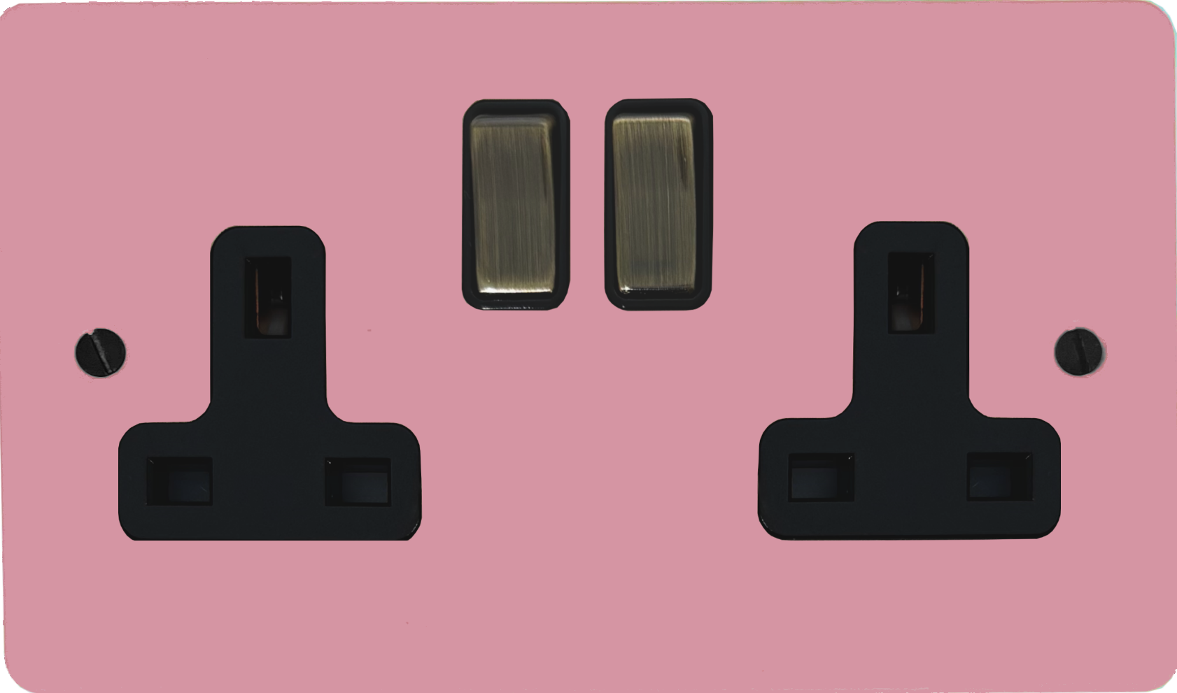Flat Gloss Pink Double Socket (Black Insert/Antique Brass Switches) - FGP310-AB
