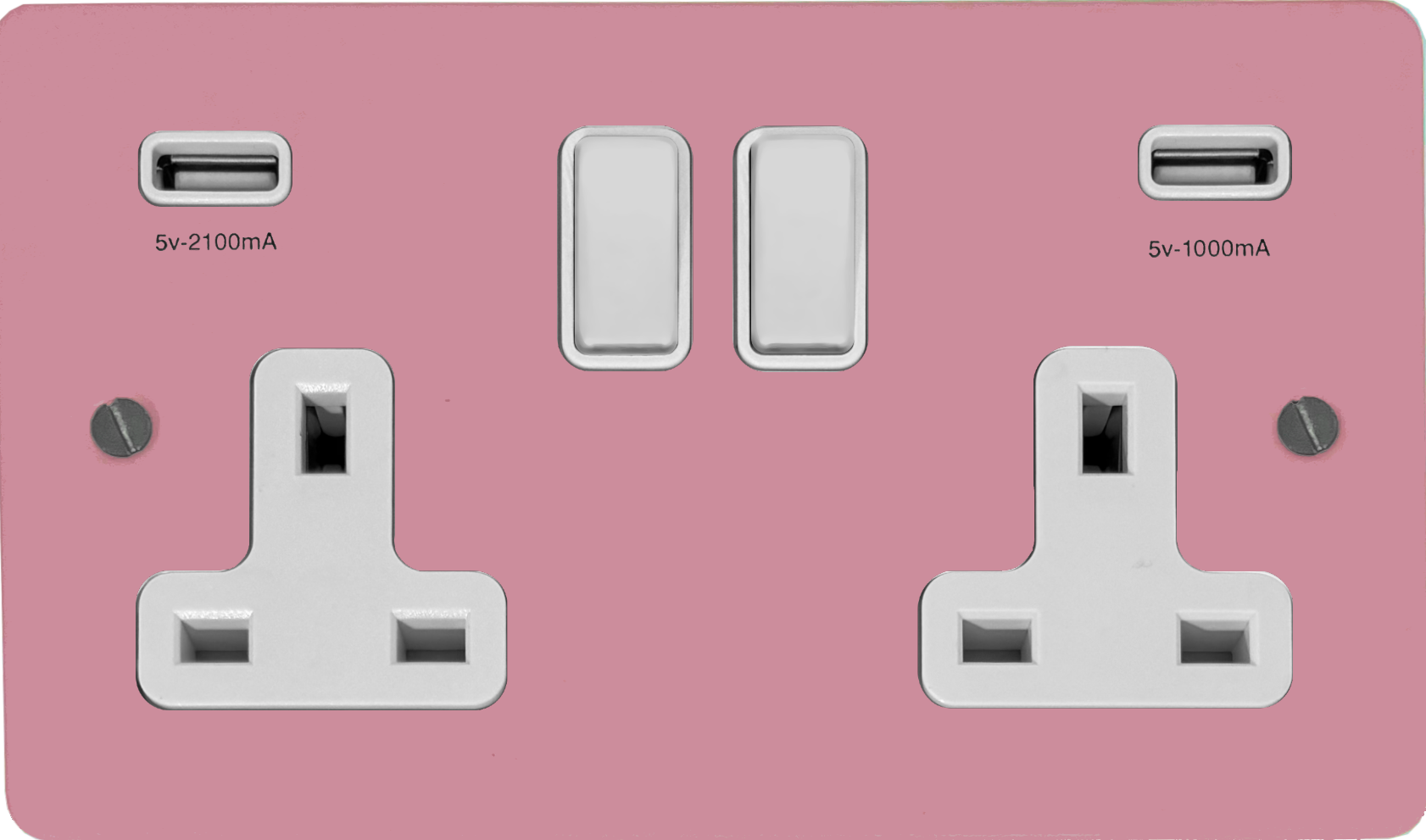 Flat Gloss Pink Double Socket with USB (White Switches) - FGP910W