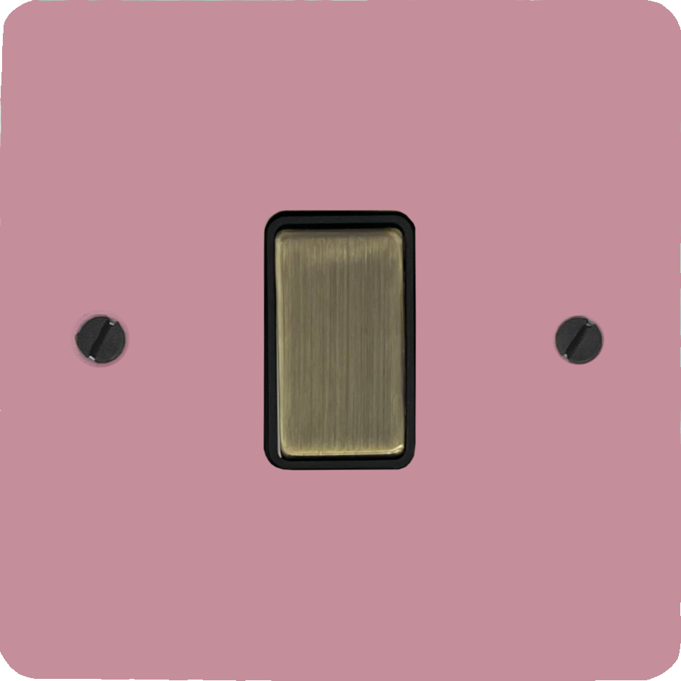 Flat Gloss Pink Light Switch (1 Gang/Black Insert/Antique Brass Switch) - FGP301-AB