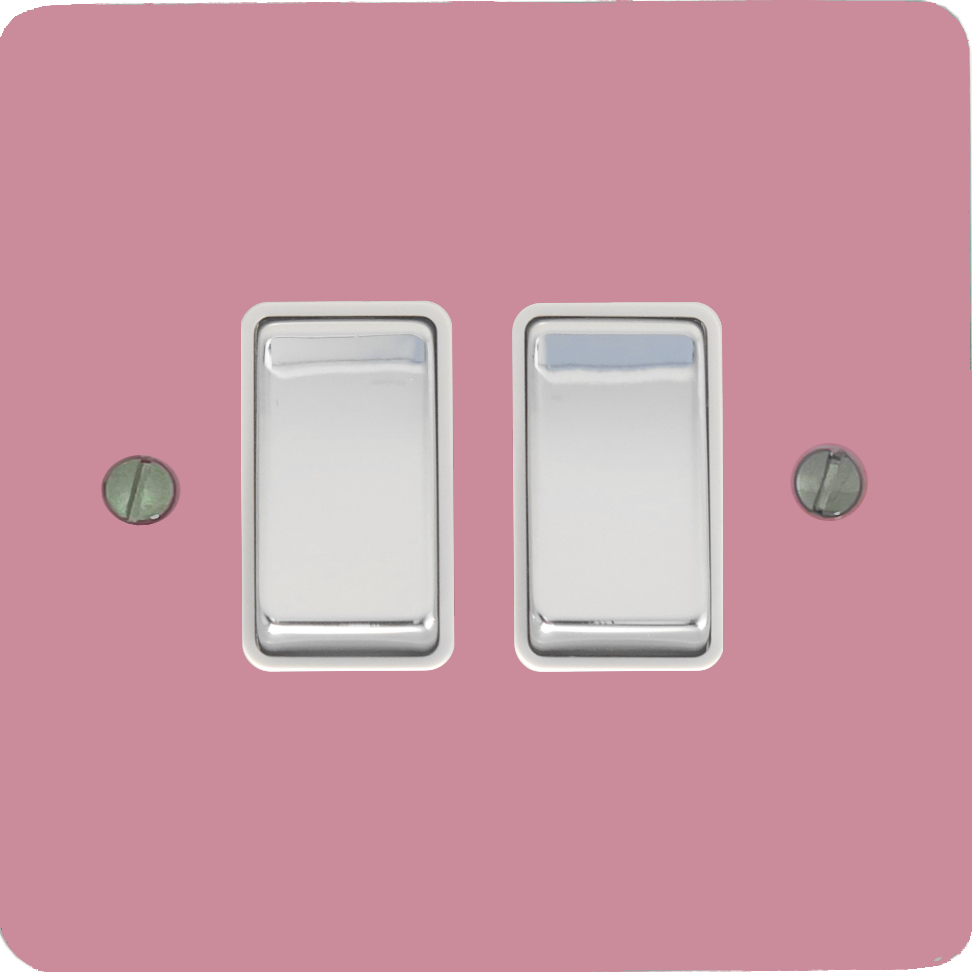 Flat Gloss Pink Light Switch (2 Gang/White Insert/Polished Chrome Switches) - FGP202-PC