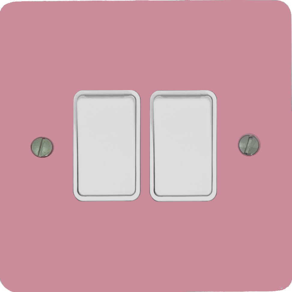 Flat Gloss Pink Light Switch (2 Gang/White Switches) - FGP2W