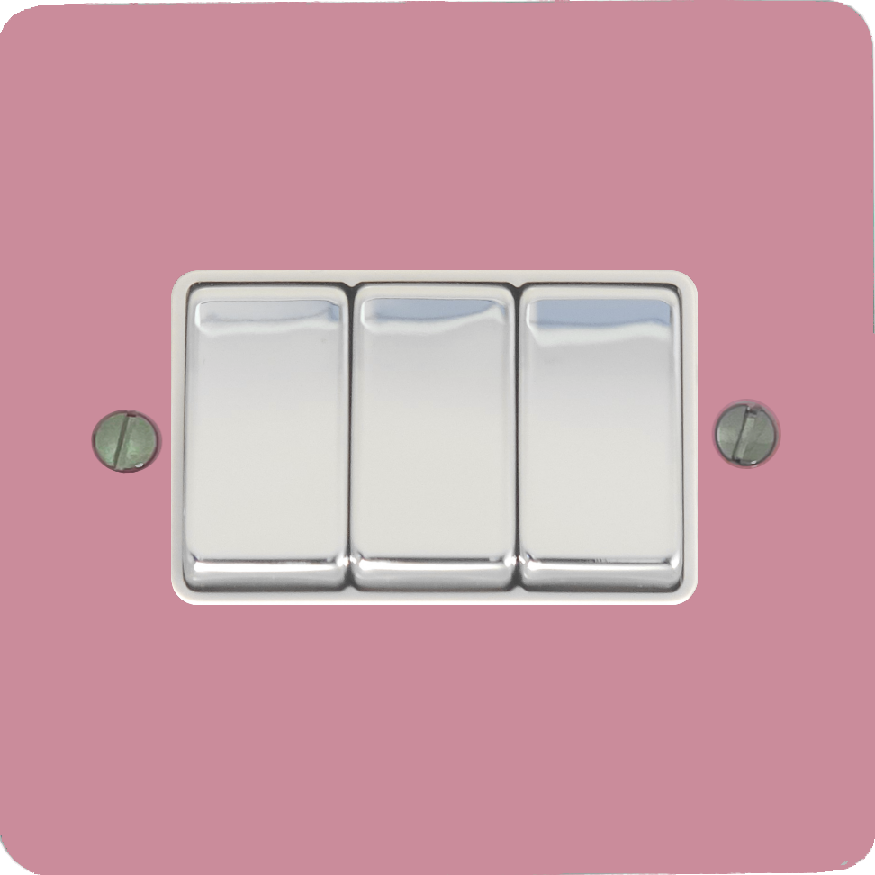 Flat Gloss Pink Light Switch (3 Gang/White Insert/Polished Chrome Switches) - FGP203-PC
