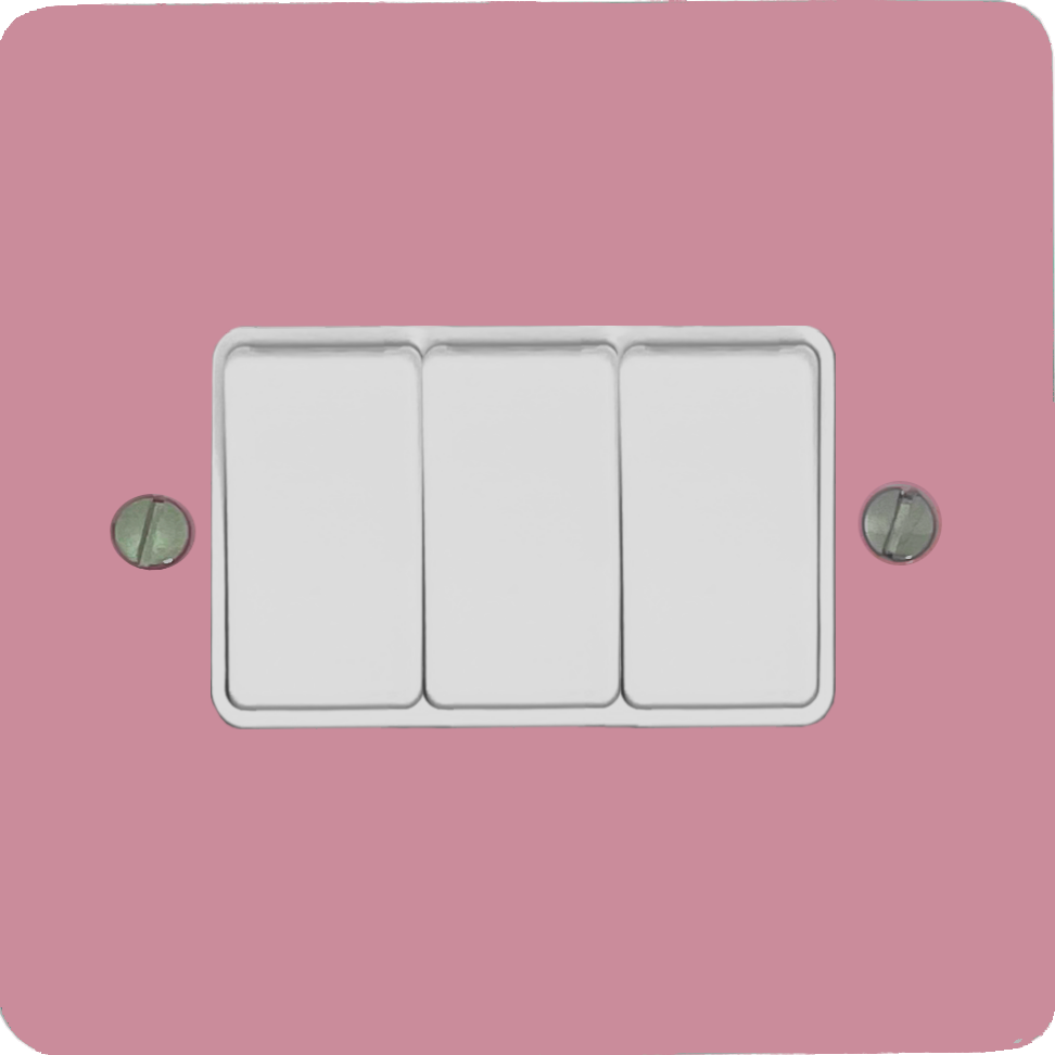 Flat Gloss Pink Light Switch (3 Gang/White Switches) - FGP3W