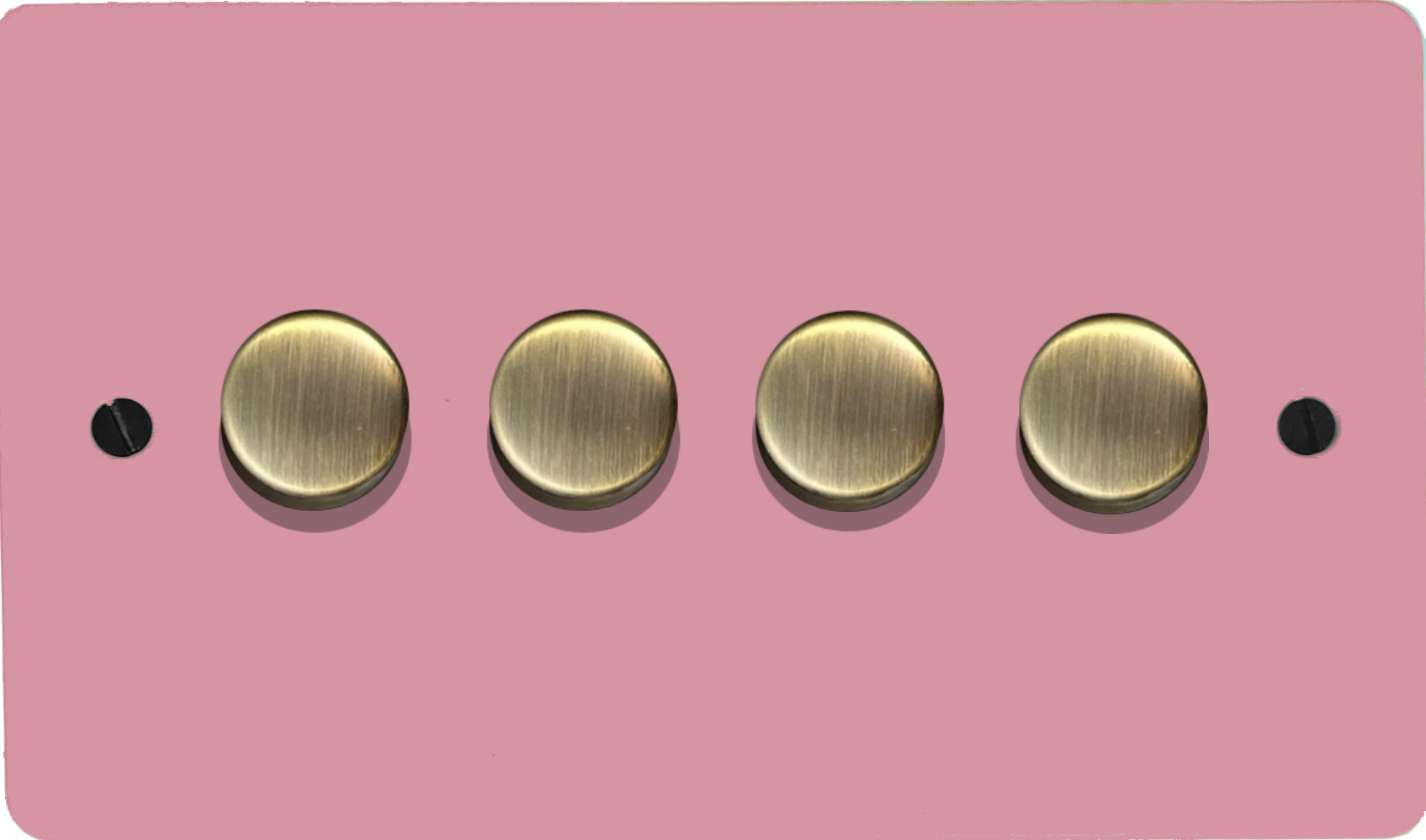 Flat Gloss Pink Push LED Dimmer (4 Gang/Antique Brass Cap) - FGP524-AB