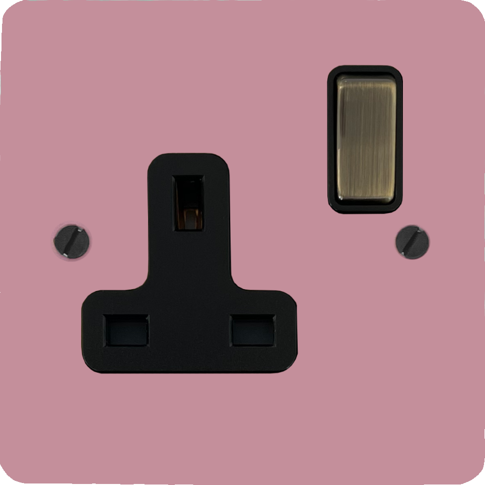 Flat Gloss Pink Single Socket (Black Insert/Antique Brass Switch) - FGP309-AB